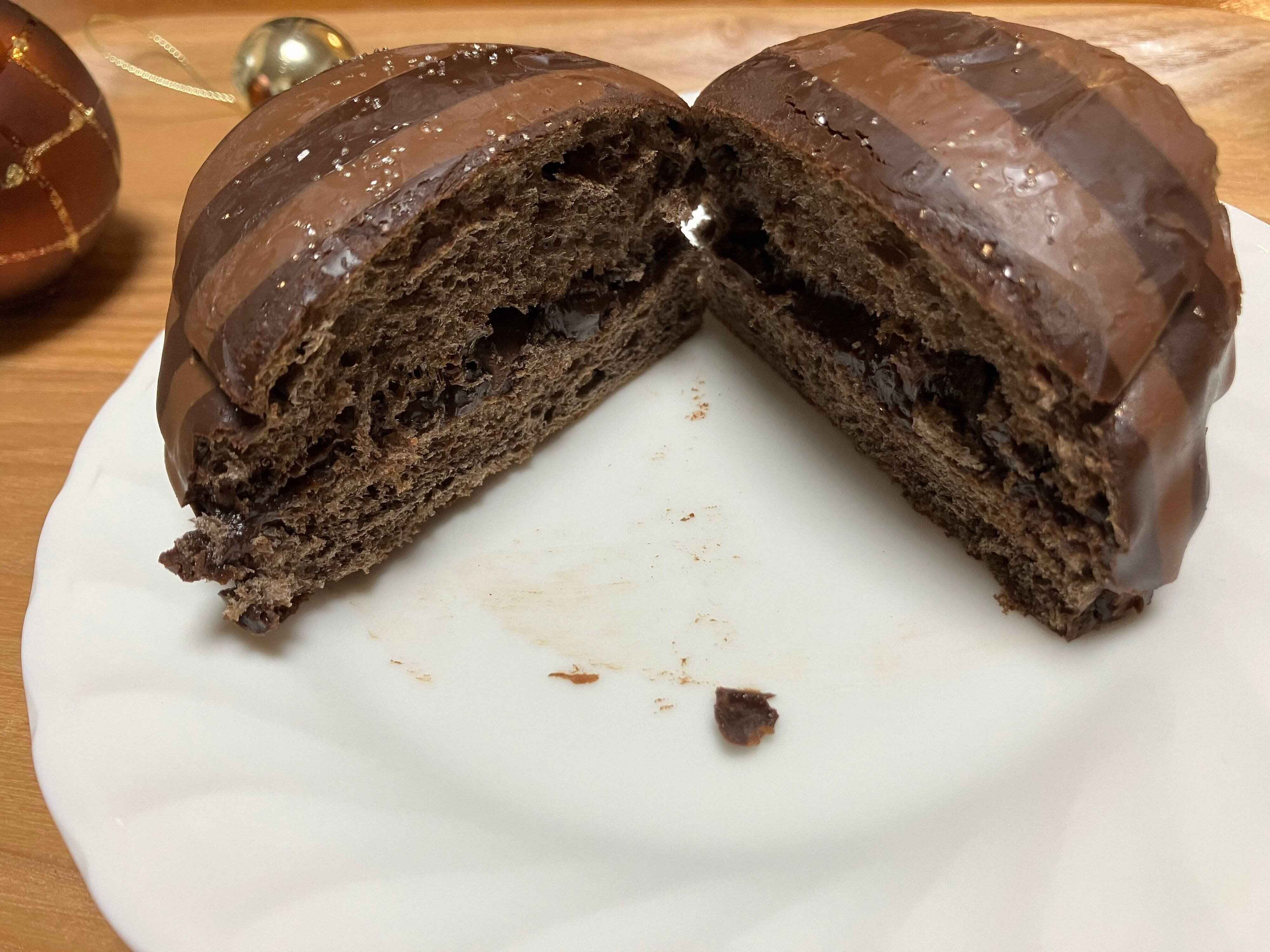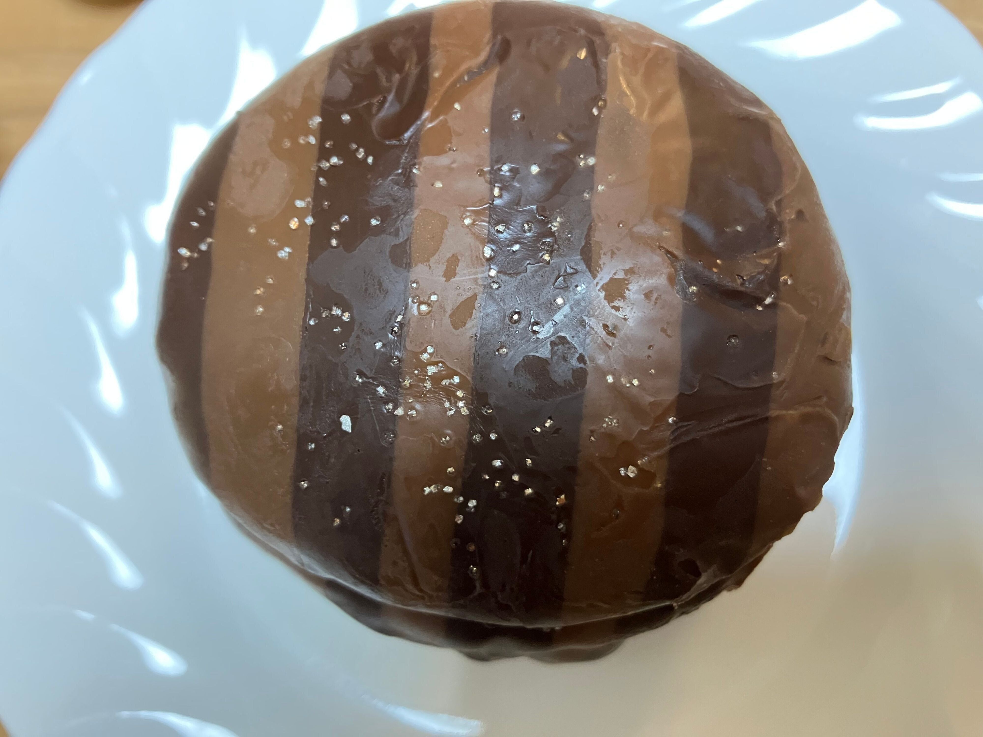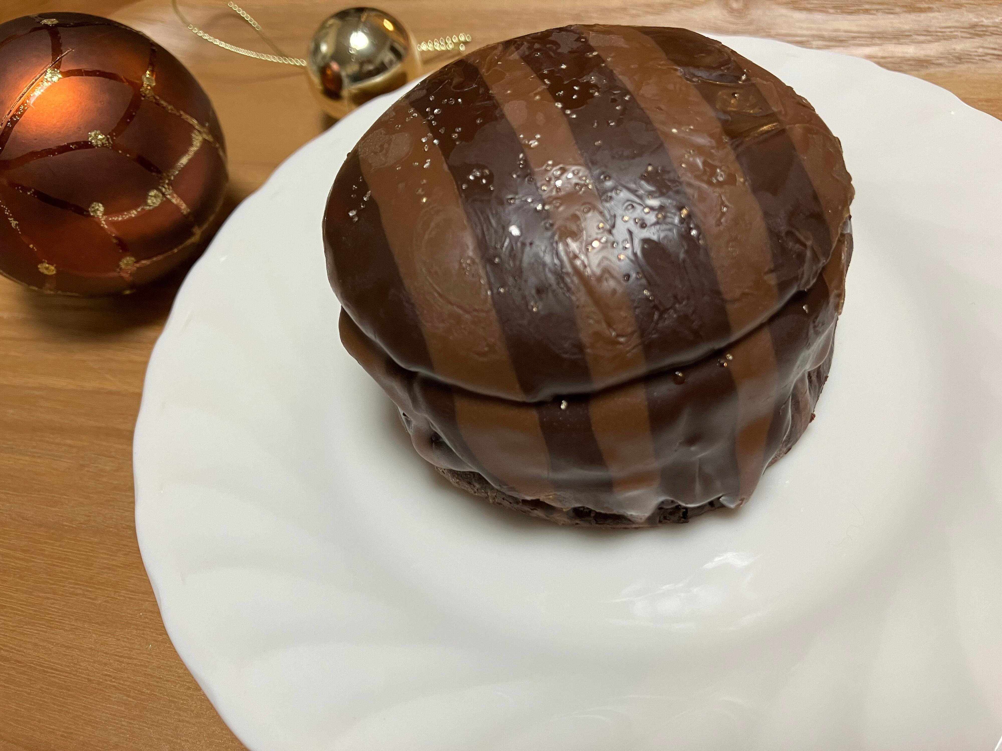 上がドーム型のパンでサンドされているので、見た目が少しチョコのハンバーガーのようにも見えます。