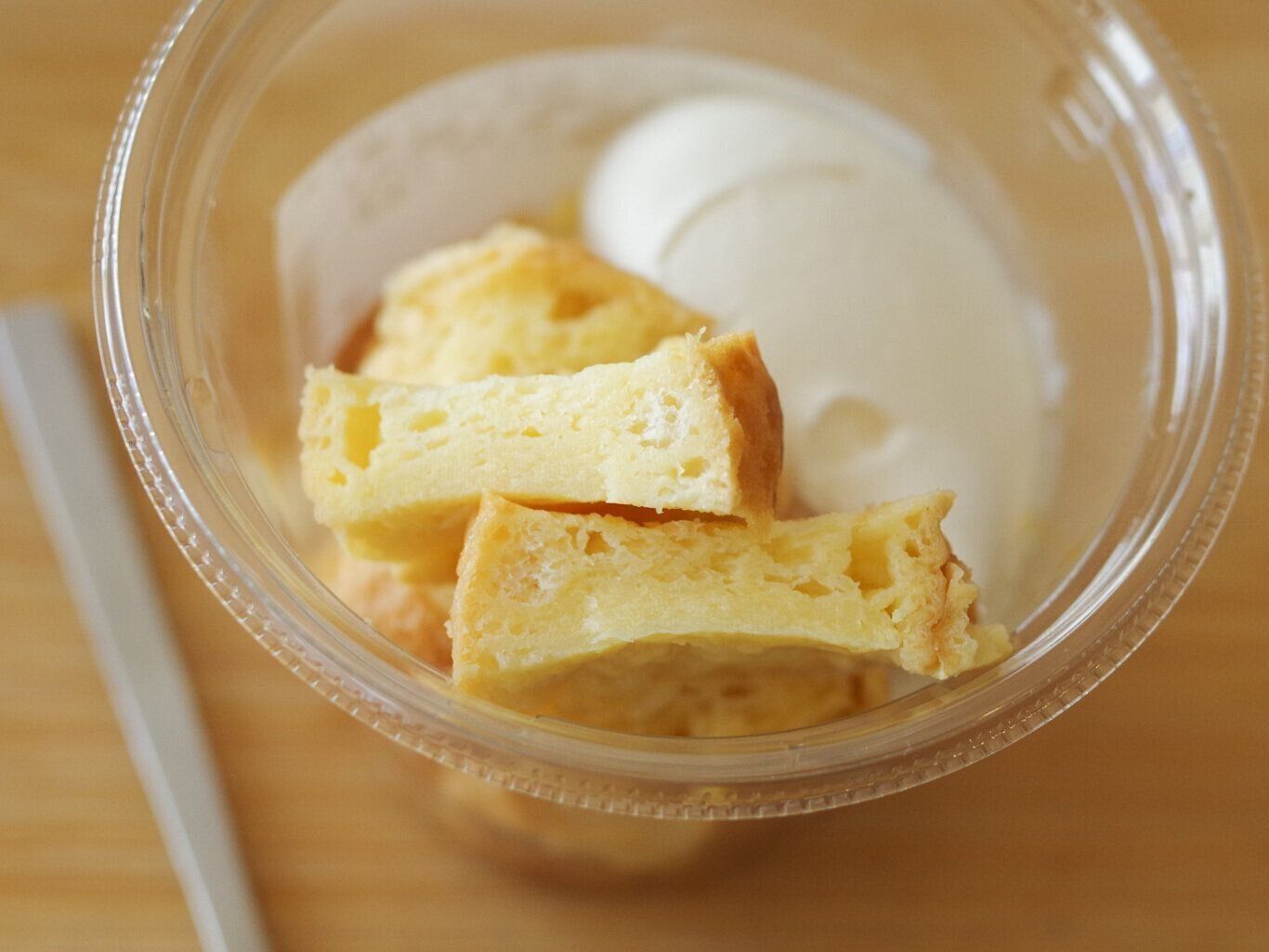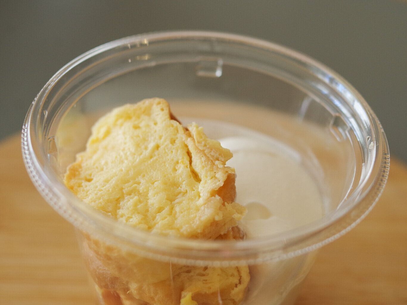 本来フレンチトーストは、ナイフとフォークで食べるものですが、カップに入ったことで外出先などでも気軽に食べやすくなりました。なかなか大きなサイズで、1食で満足感を得られるスイーツなのです。