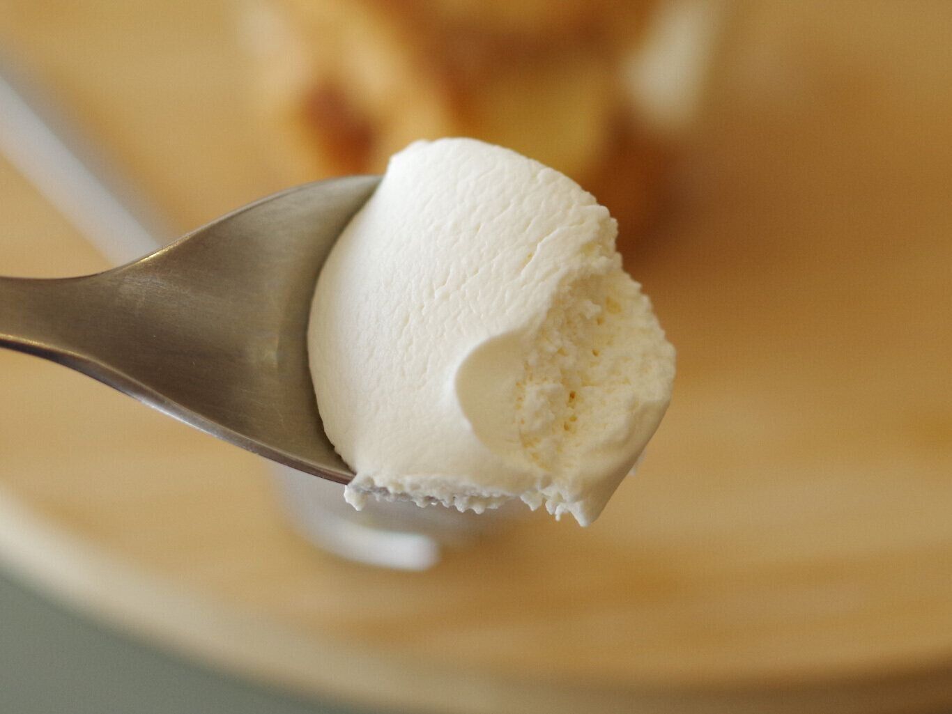 一般的なホイップとほとんど変わらない見た目ですが、一口食べるとメープル味がしっかり主張してきます。ホイップはトロトロというよりもやや固め。口の中でシュワッと溶けるような食感がたまりませんでした…!