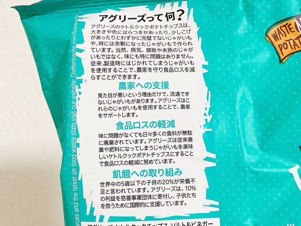 農家を守り、飢餓への取り組みなど子供達を救うための活動もしているこのポテトチップス。