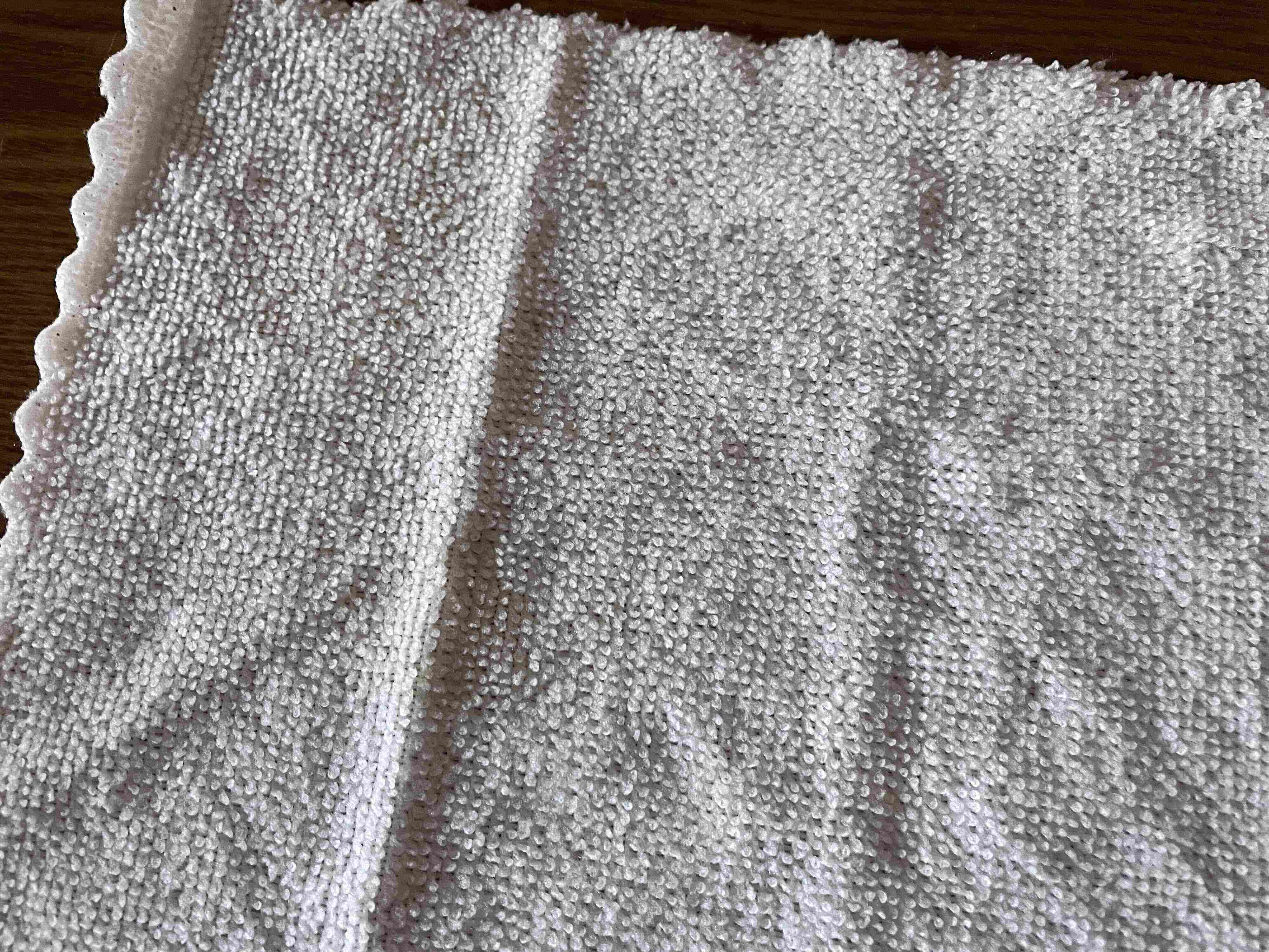 クロスを取り出してみると、一般的なマイクロファイバークロスよりはちょっと薄いかな?という印象。でも、しっかり吸収力はあるんです。