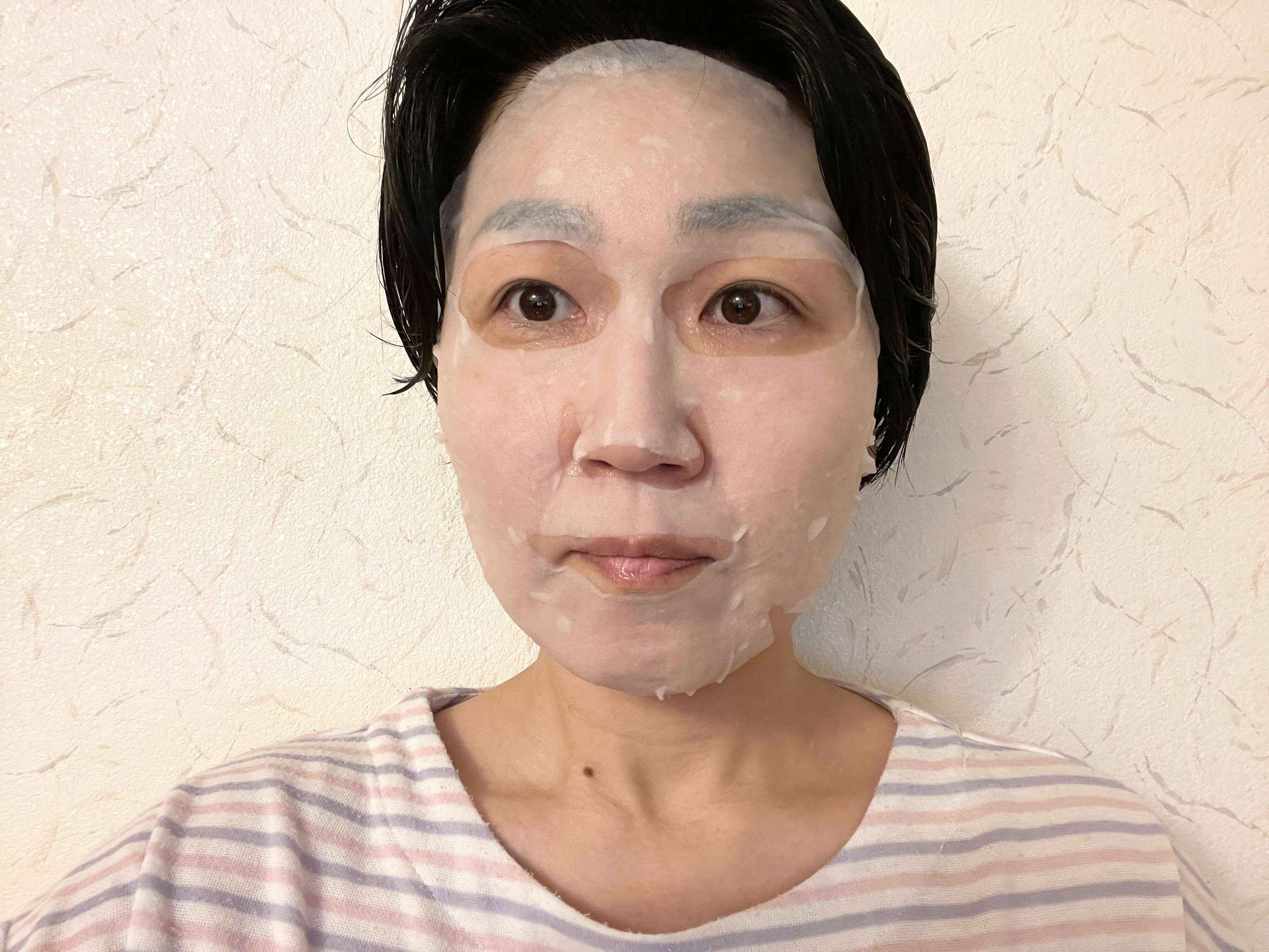 1つのマスクには、美容液が25ml入っています。封を開けると、とろんとした美容液でシートがひたひた!