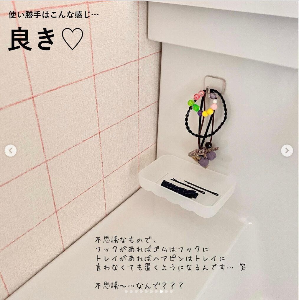 サビたら困るヘアピンの定位置に!貼ってはがせるソープトレイを活用