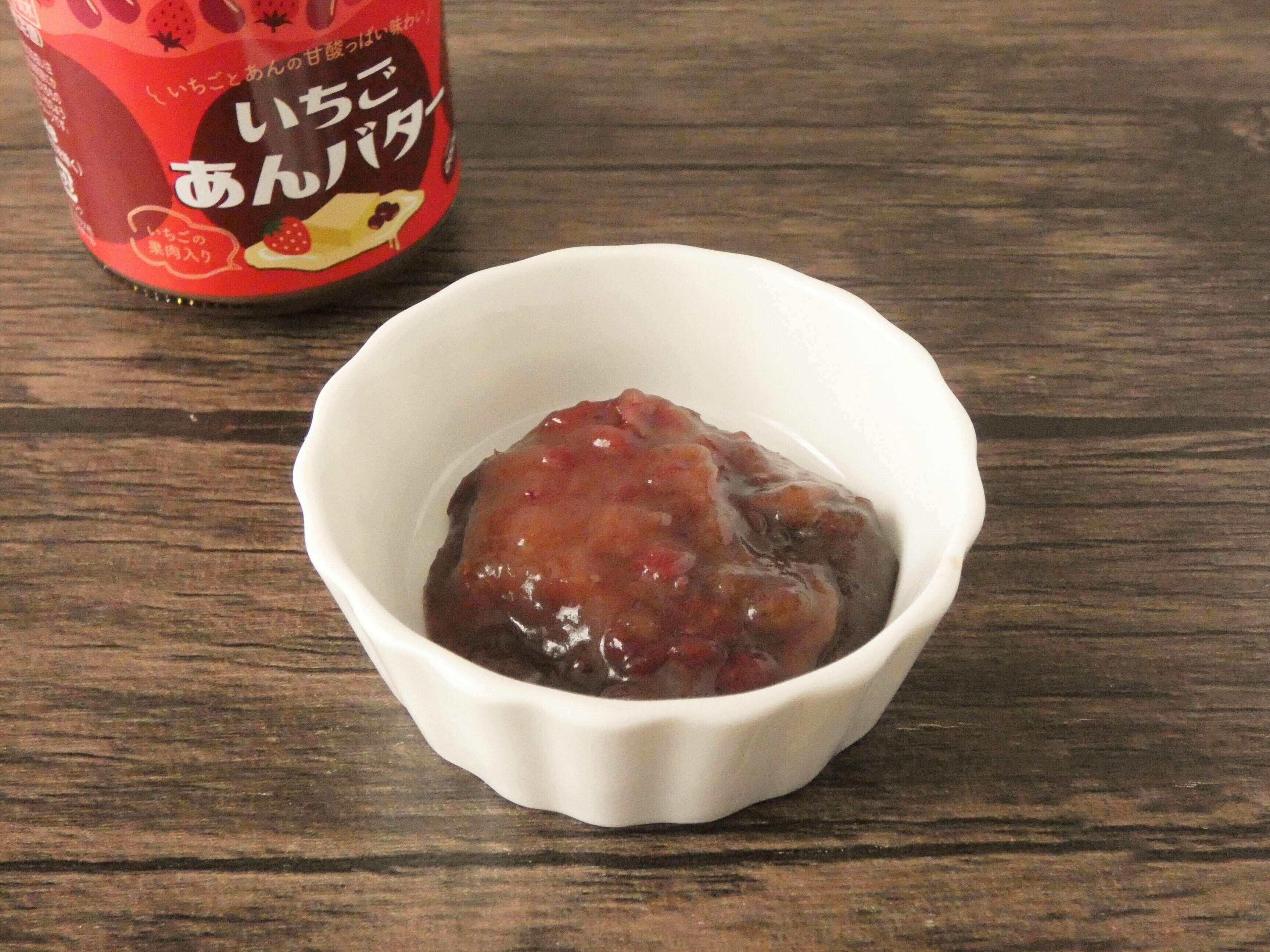 アイスとの組み合わせはさらにおいしいです。ひんやり冷たいアイスとあんバターのコク、いちごの酸味がしっかり合わさってこれは止まらない。粒あんのつぶが大きくて、食感がアクセントになっています。