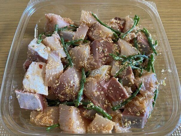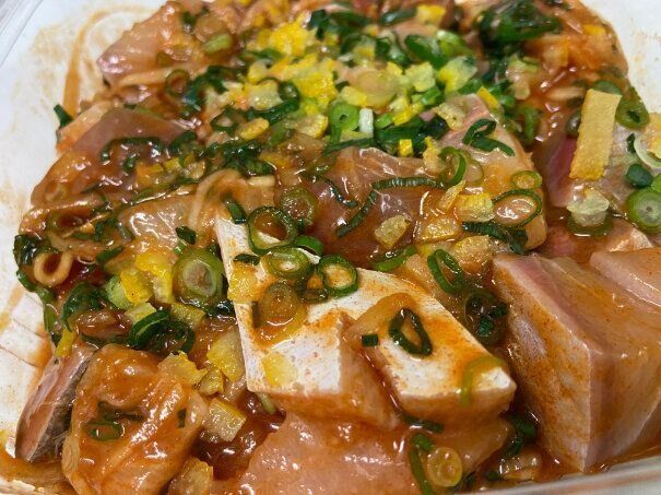 ピリ辛でおいしいぶりポキ(ネギ味噌)をぜひ!