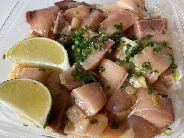 ゆずがしっかりきいて爽やかな酸味と香りがたまらないぶりポキ(スパイシーゆず)。