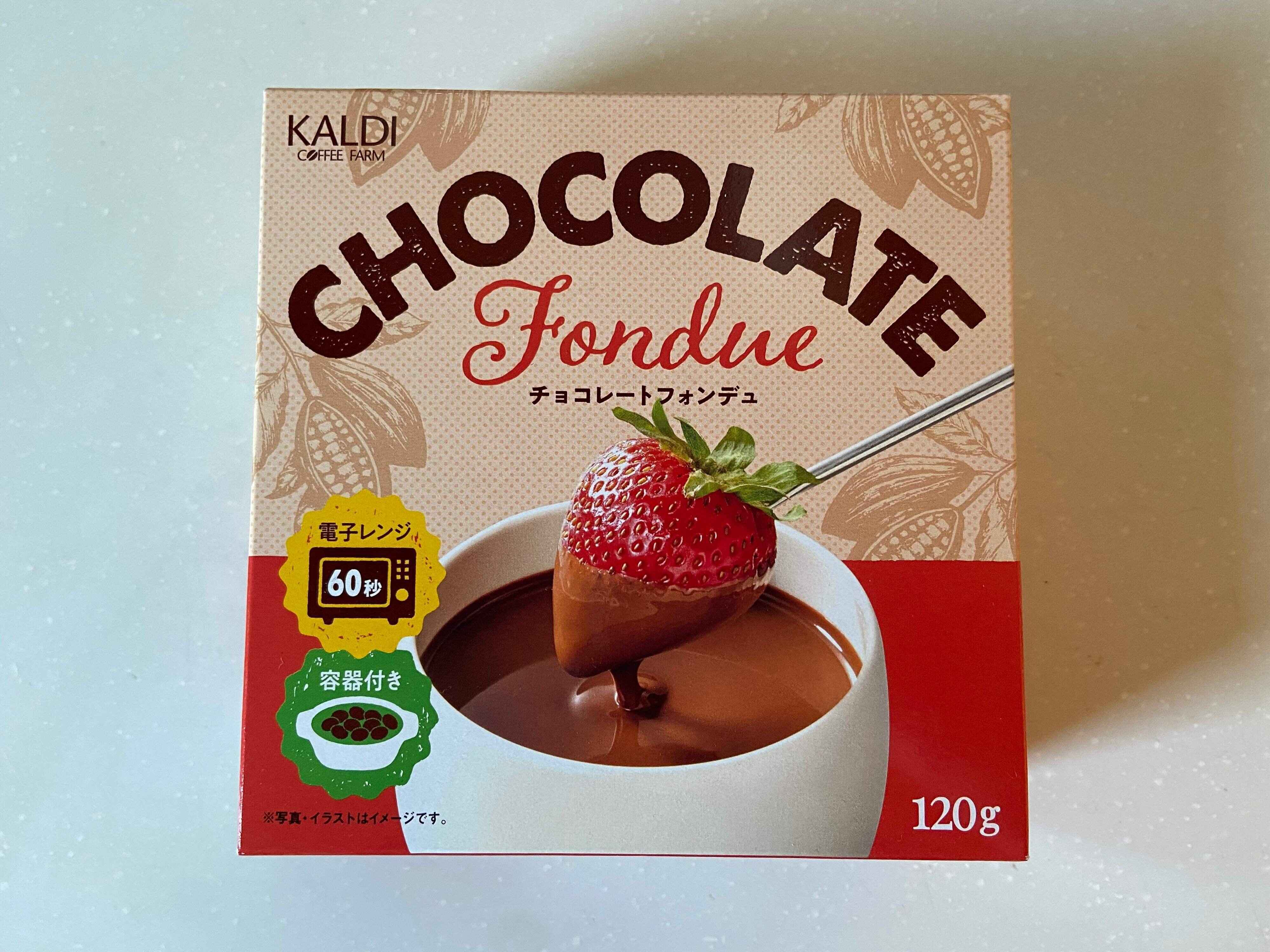 カルディ店頭で見つけたおいしそうなパッケージ写真に惹かれて購入したのが、「チョコレートフォンデュ」(購入時価格:321円)。