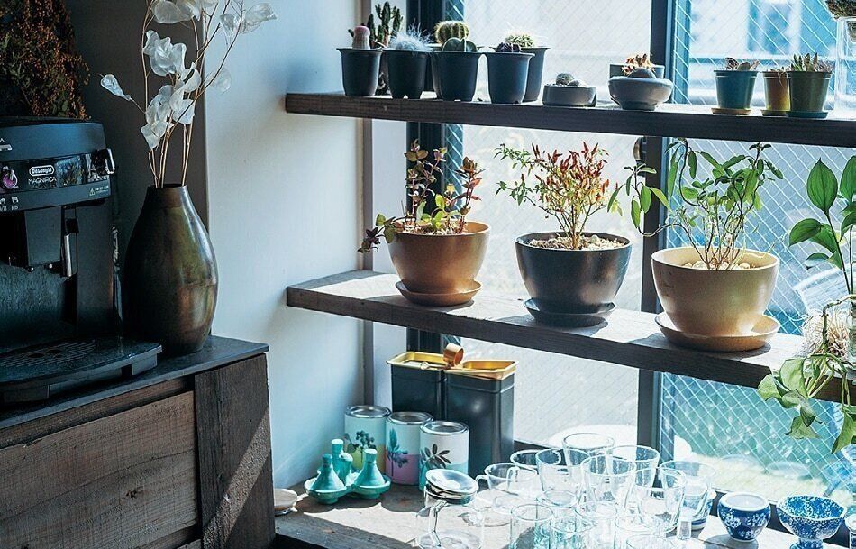 例えば仕事。個人のお客さまのガーデンセンターでの買い物にも同行するし、専門学校で教える仕事も受ける。これは好きだから。一方、家事は極力やらない方法を考える。これは好きじゃないから。植物は大好きだけれど、実は管理は苦手だから、水やり頻度が少なくていい植物に限定して集めたり、水やりしやすい動線を作るといった具合に好きは諦めずに、苦手を手放す。あれもこれもバランスよくではなく、好きなものを選び、苦手なものは遠ざけるべく、知恵を絞る。「そうやってちょっとずつ自分の周りに好きなものを増やしていったら、どんどん心地いい暮らしになり、幸せだなって感じることが増えました」。