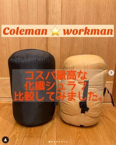 コールマンとワークマンのシュラフを比較してみると、ワークマンの「3Mレジストスリーピングバッグ」はお布団のような肌ざわり。こちらの方が冷気が入りにくい構造になっているようです。6,800円で購入できるのは、とてもお買い得ですね。こちらもWEB限定商品です。