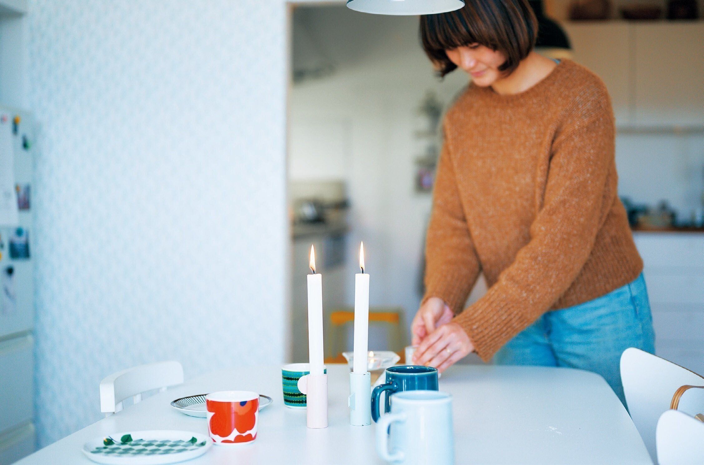どんよりとした曇りの朝は食卓にキャンドルを。小さな灯りを少し置くだけで、やわらかな明るさが生まれる。