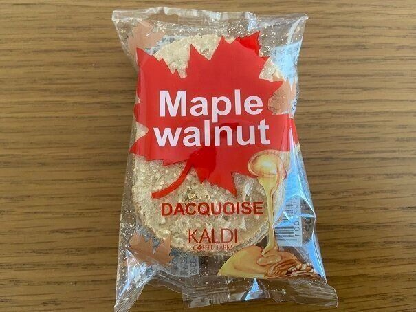 筆者が大好きな組み合わせを売り場で見た瞬間、思わず手に取ったのが、「メープルくるみダックワーズ」(購入時:120円)。