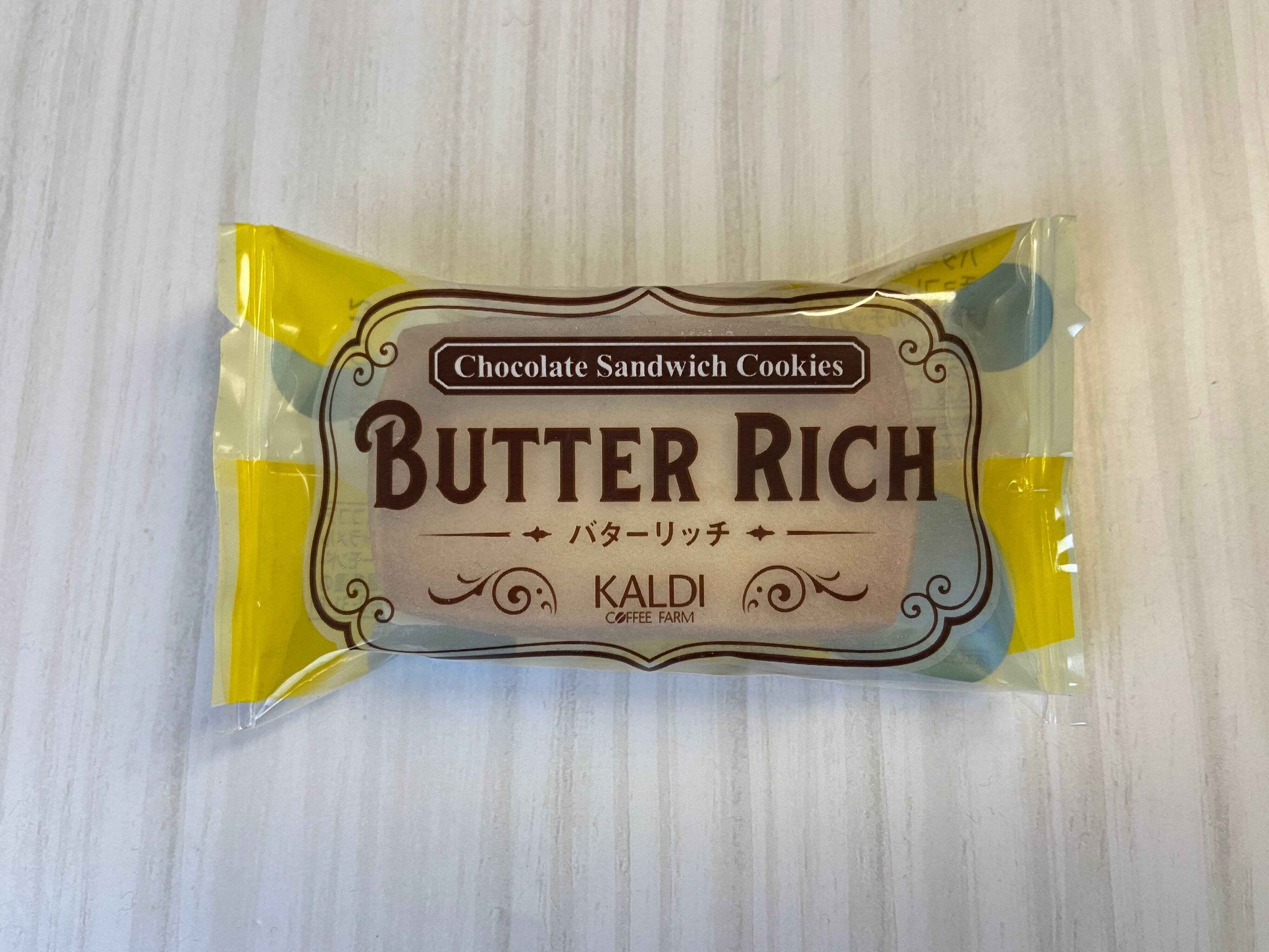 まずはこちら、先日購入してきたばかりの「チョコレートサンドクッキーバターリッチ」(購入時:162円)です。