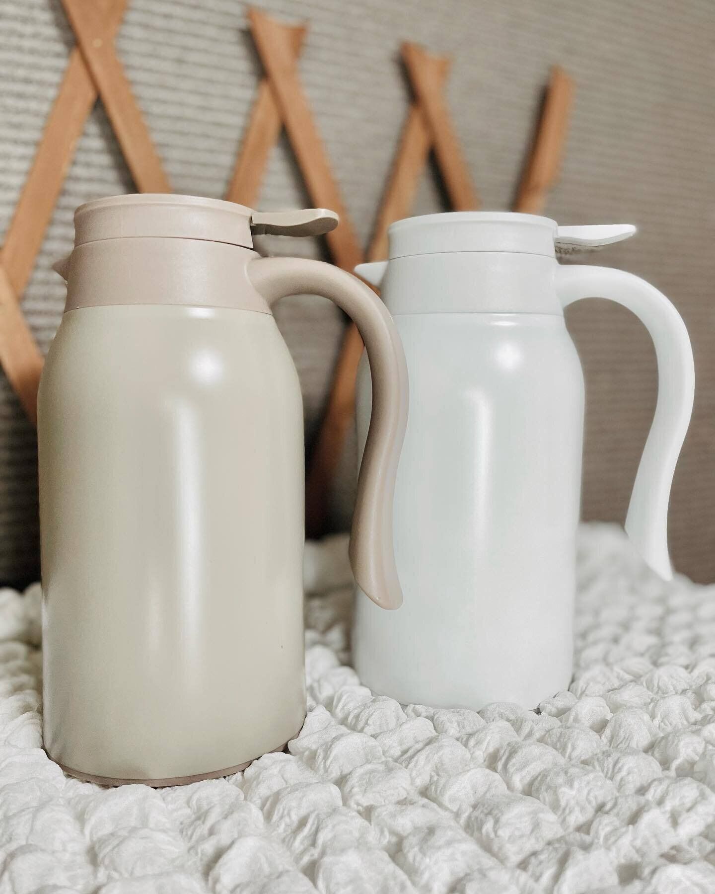 「エコで使いやすい!」と話題の「卓上ポット900ml」。保温・保冷機能があるため、机の上に出しっぱなしにしていても大丈夫。家族全員が飲みたいときに手にとりやすくなりますね。ホワイトとベージュカラーの2色展開で、生活感をカバーしてくれるほど、見た目もおしゃれ!値段は、1,650円となっています。
