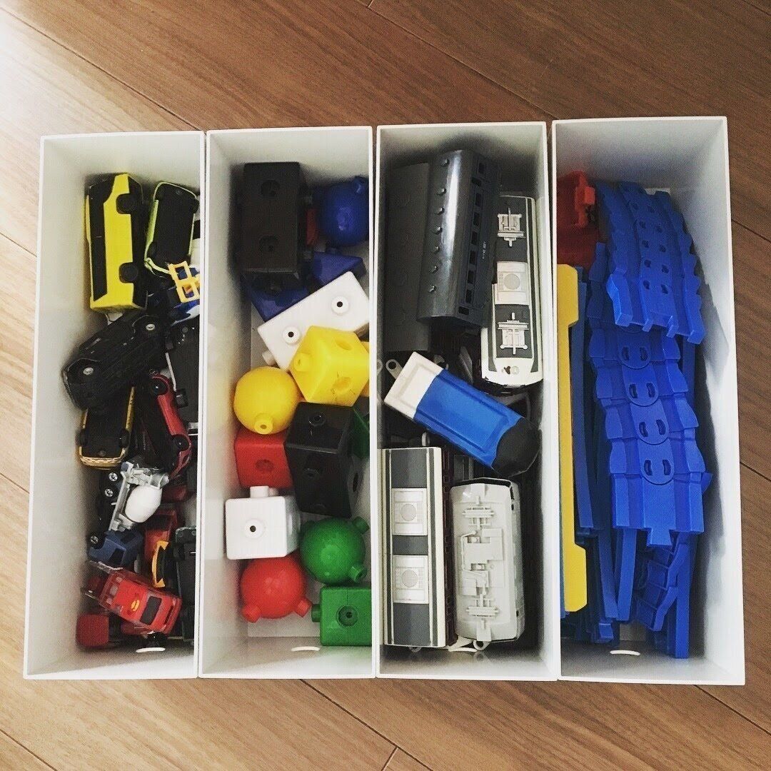 初めは1つのBOXにざっくり入れていたおもちゃでも、成長とともにこまごまとしたおもちゃが増えていきます。