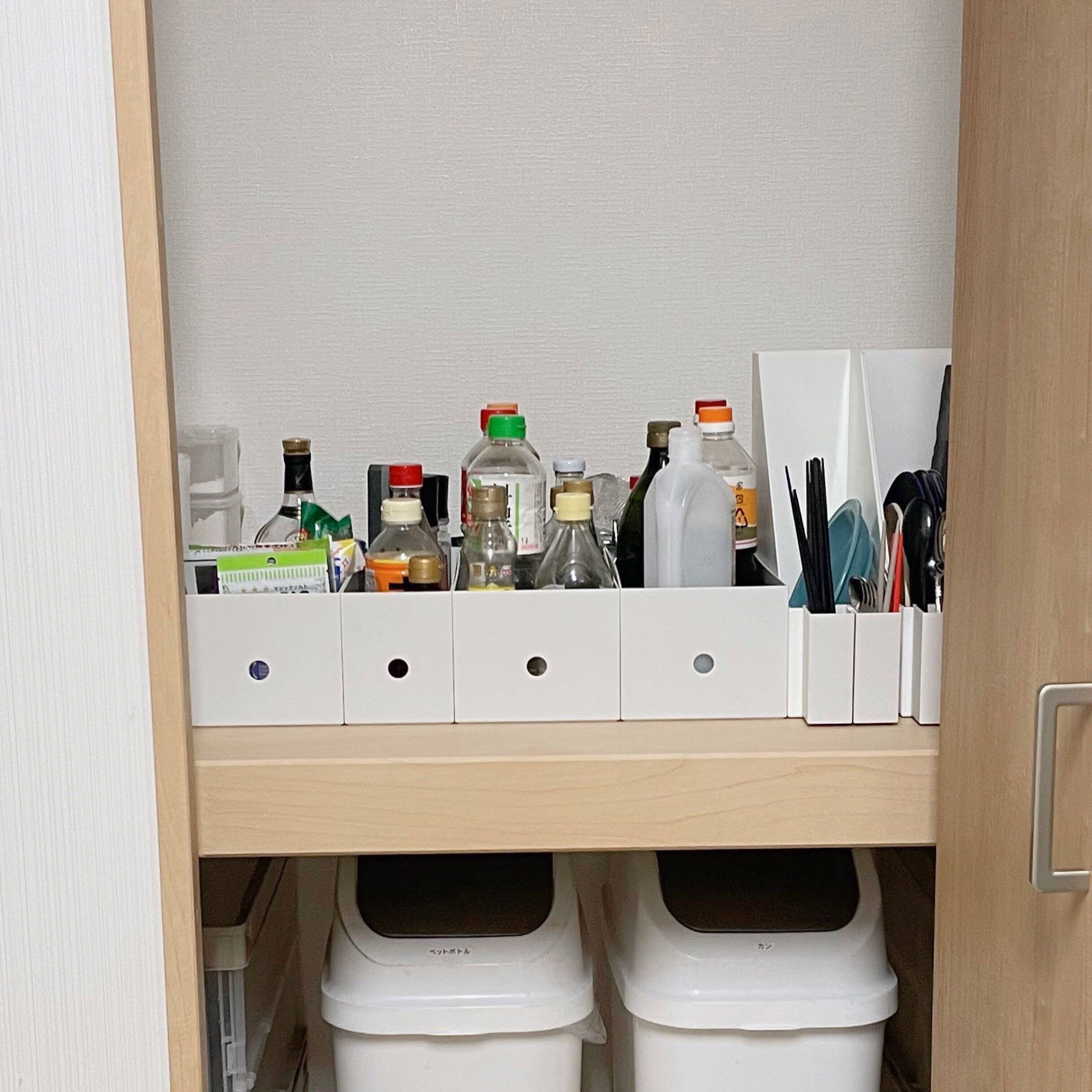 ファイルボックス1/2は、調味料ボトル収納としても使えます。
