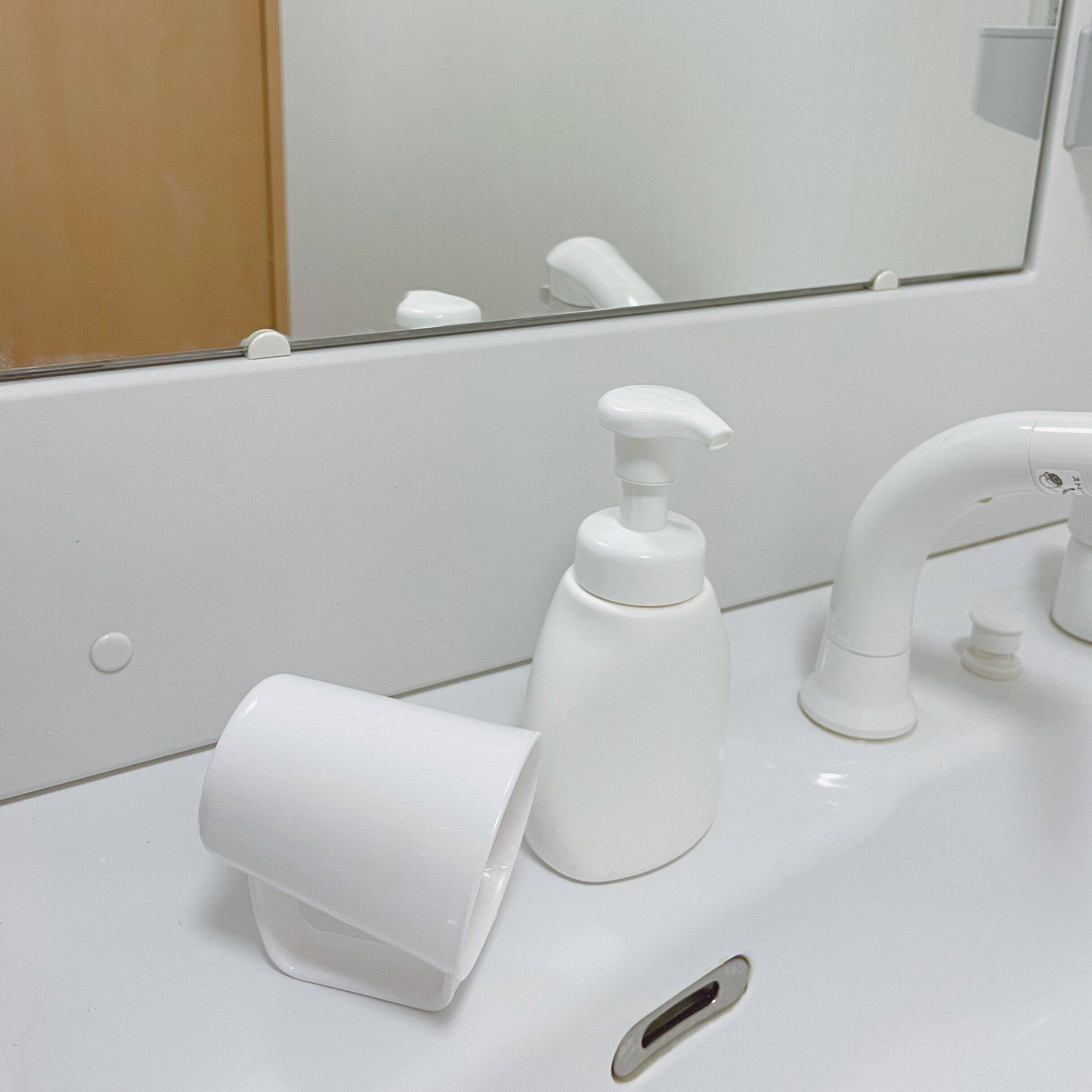 真っ白な無地のデザインが、清潔感のある洗面に馴染みます。