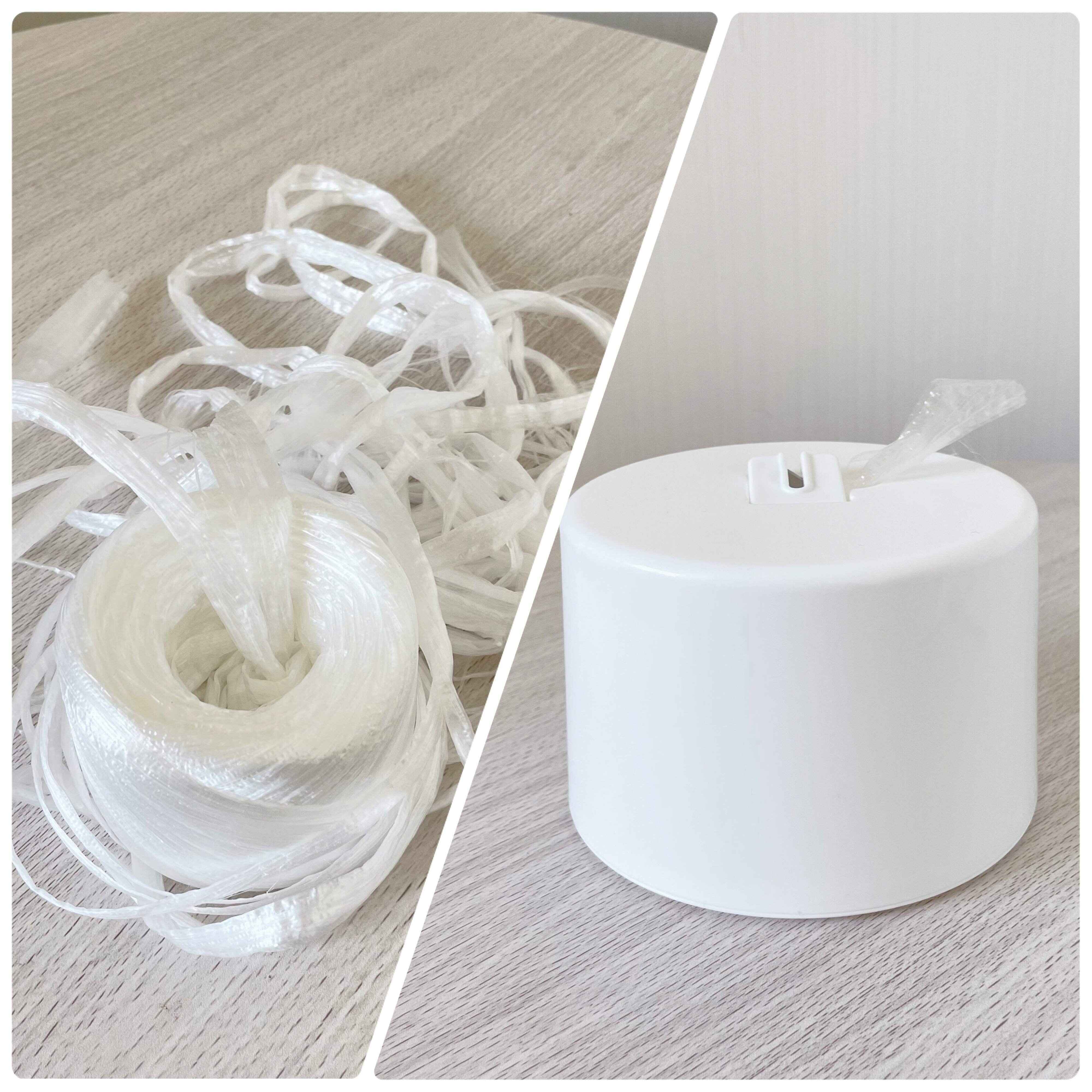 このアイテムに収納すれば、シンプルな無地の白色ケースに梱包紐がぴったりと収まり、ごちゃつくこともありません。