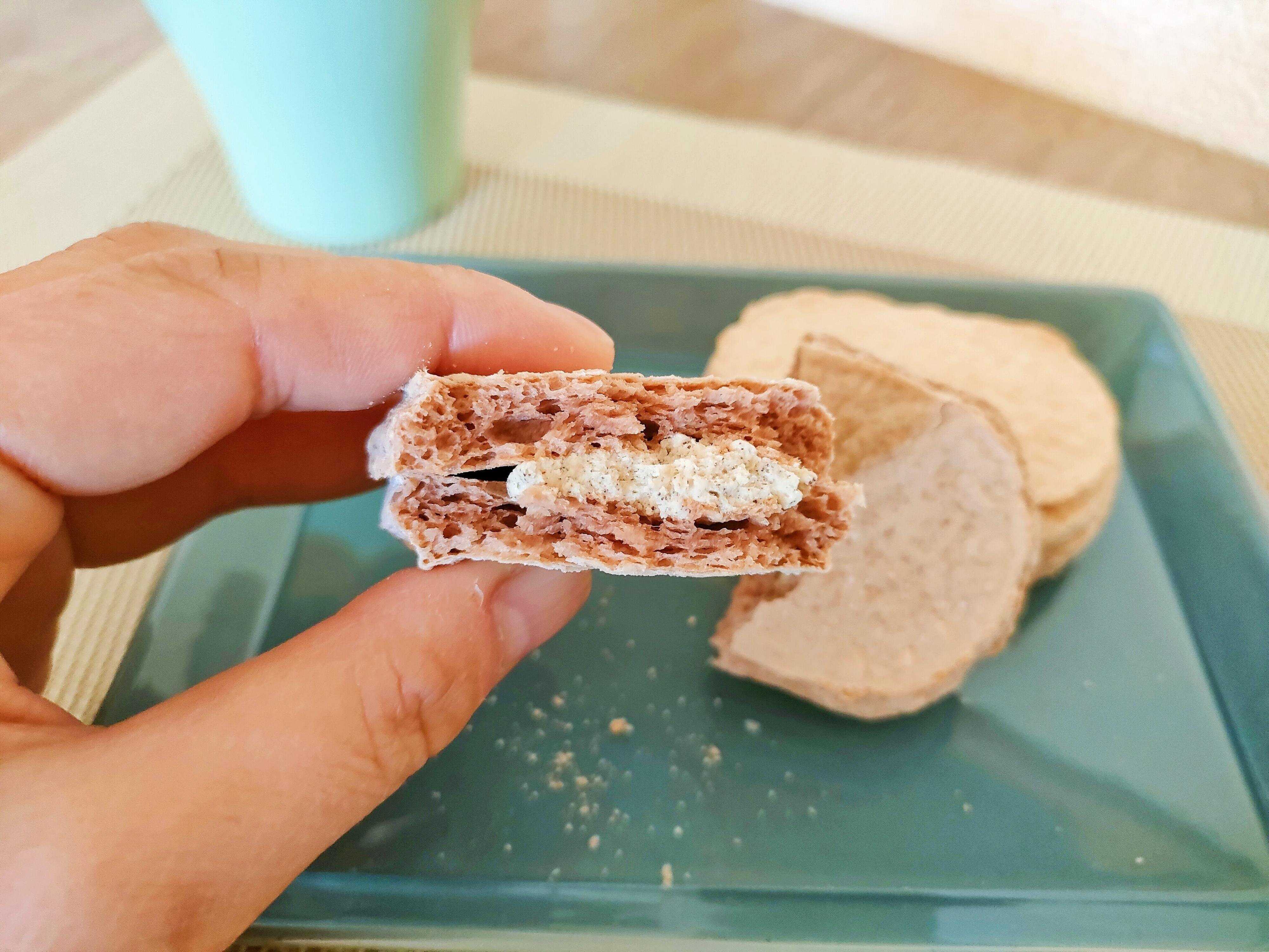 ほんのり甘さを感じるクリームに粉末のコーヒーが混じっているため大人向けに感じます。またマスカルポーネチーズパウダーが入っているからか、クリームの食感もさっくりしていますね。