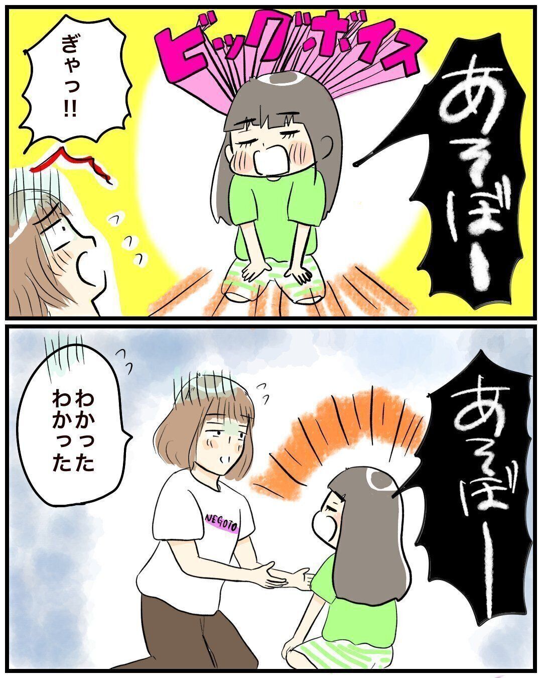 「後日、夫が休みの日に全く同じ言い方で『おとうさんあそぼー!』と誘っているのを聞きました。