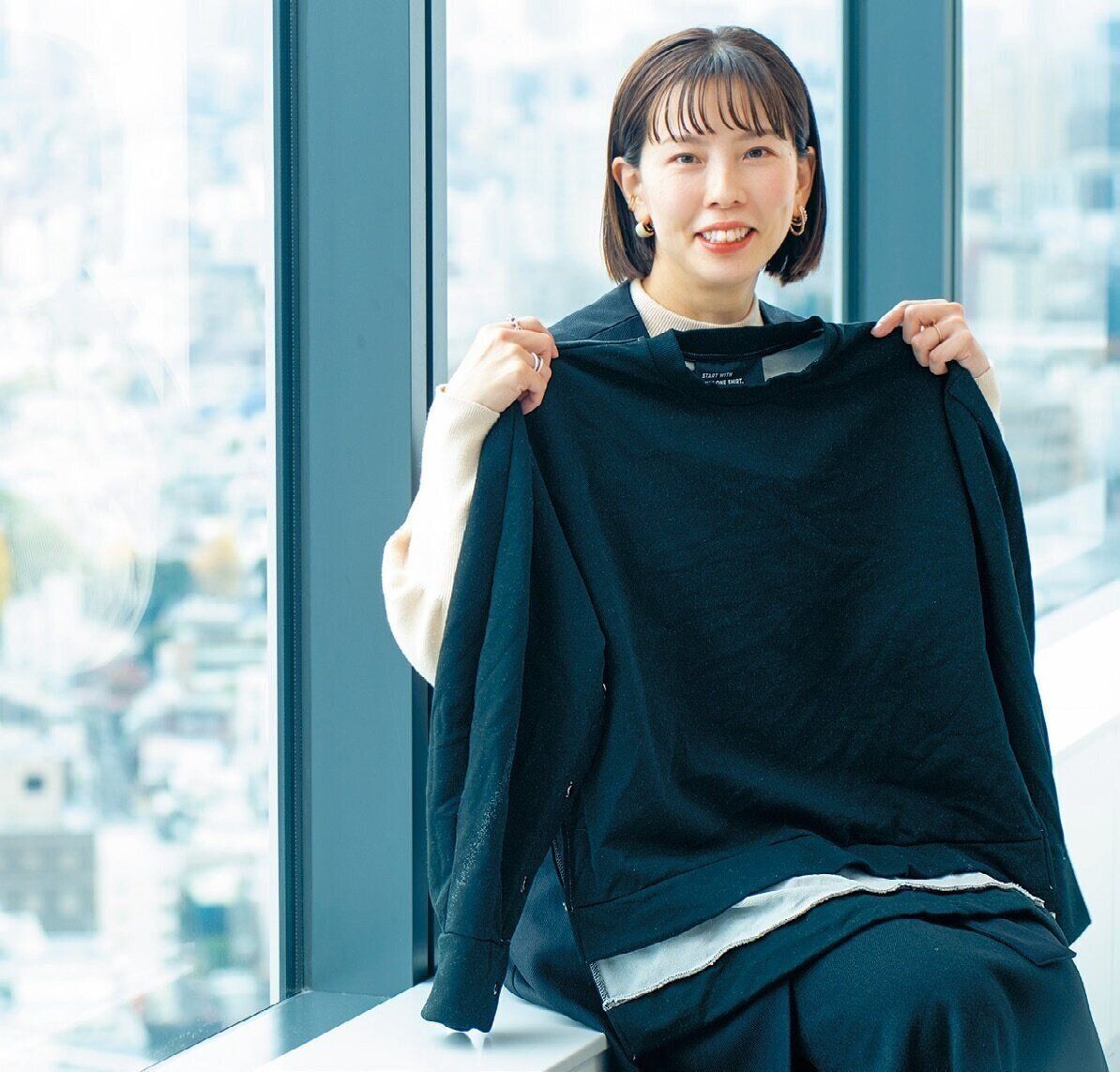 服を別の視点から見るようになったきっかけは「衣類ロスを減らす」目的で立ち上がった他部署への異動。さらに自身の出産も重なり「娘が大きくなったときにどんな地球になっているか考えると、私は服をただ売ればいいわけじゃない。売る側として"地球環境"と"洋服のワクワク感"を両立させる方法を考えなくちゃいけない、と思うようになりました」。