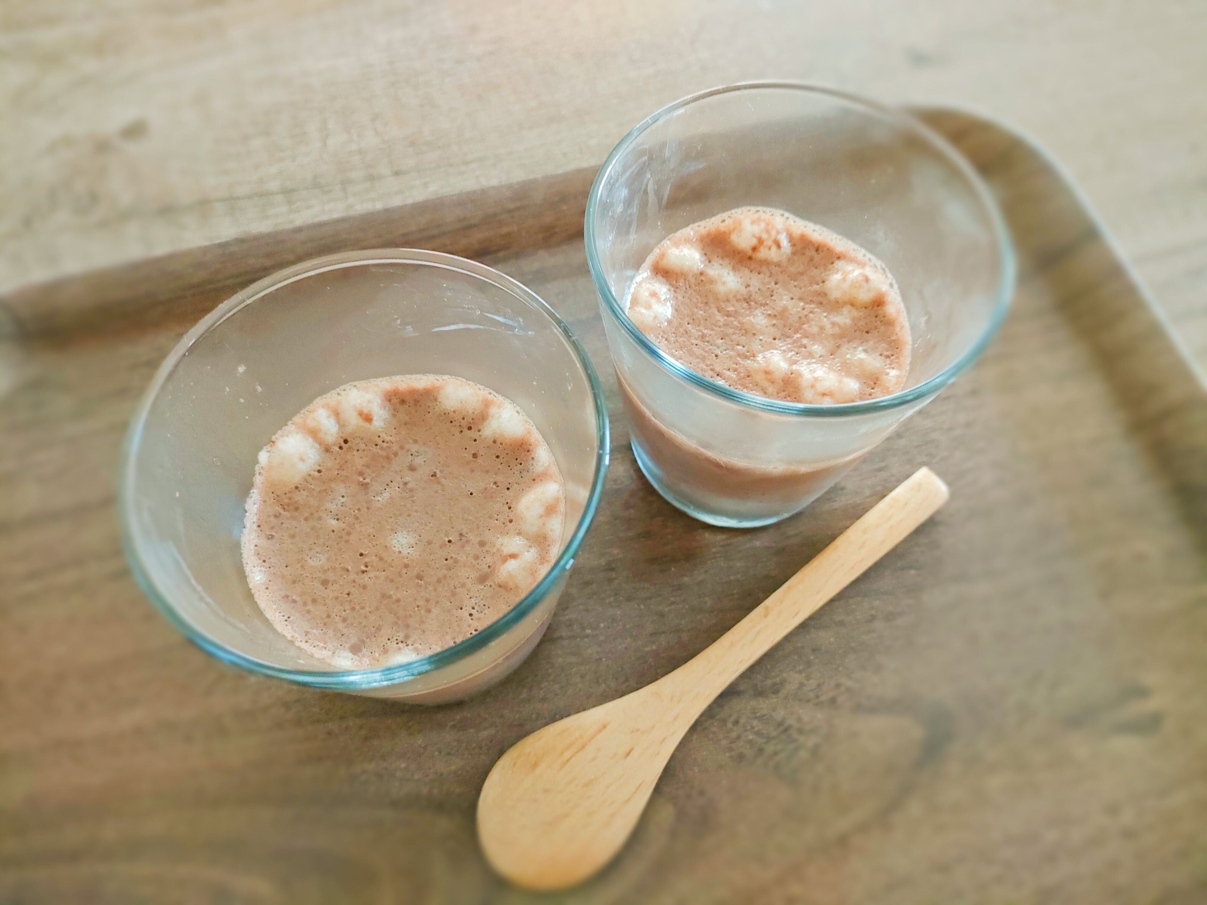 チョコプリンにマシュマロをいれて、液化させたものを再度固めると甘めのチョコプリンに早変わり!