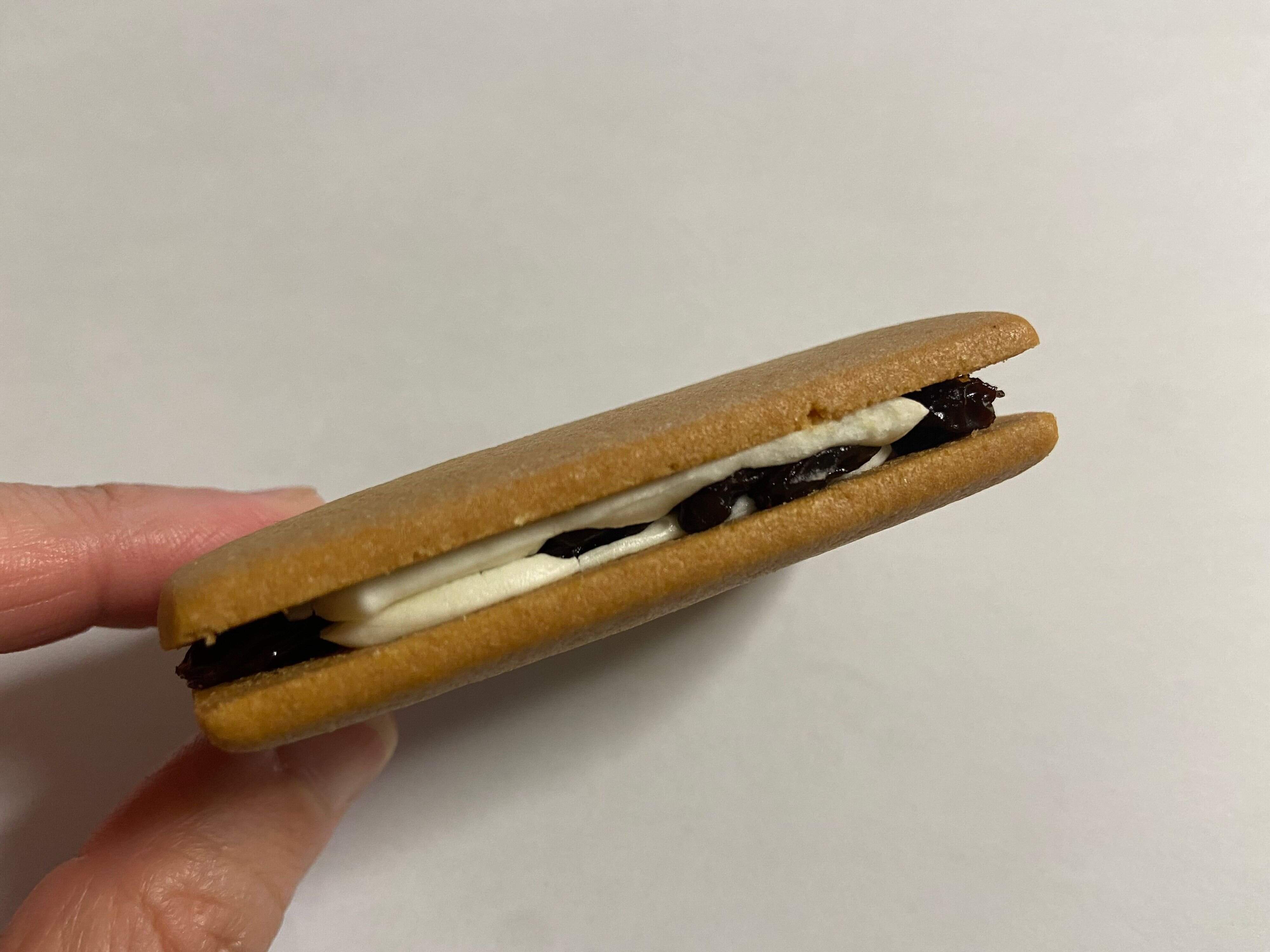 食べる前から爽やかなレモンの香りがふわっと広がります。見た目も中身もほぼレーズンサンドと同じですが、レモンのほんのり甘酸っぱい味わいとオーツ麦の香ばしさを感じられる、今まで食べたことがないレーズンサンドでした!