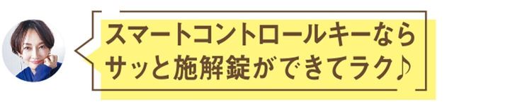 鍵穴にさして施解錠する必要がないスマートコントロールキーは、両手がふさがっているシーンや、急いでいる日などに負担が少なく、メリット大。家族の「顔」が鍵になる顔認証キーに注目