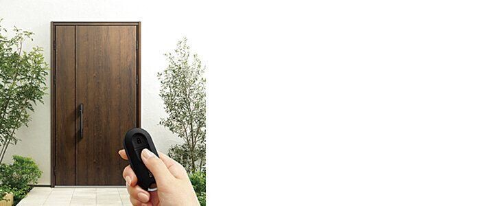 リモコンキーを携帯しハンドルのボタンを押して施解錠。リモコン操作も可能