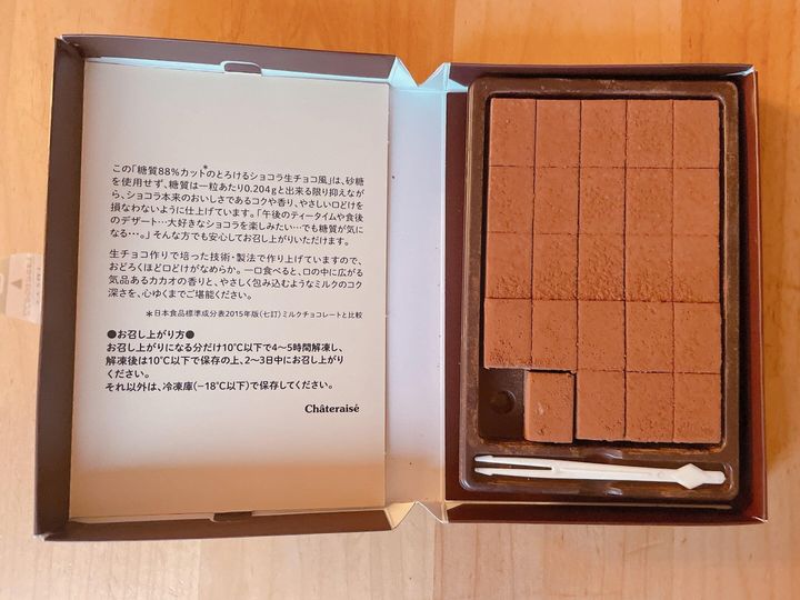 同じくシャトレーゼで販売されている糖質カットではない生チョコレートと比べてみると、まず、見た目は同じです。違いが見つけられません。