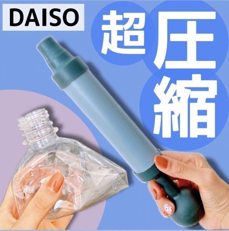 実際溜まったペットボトルを1本1本潰していくのは割と重労働!そんな時に助かるのがこちらの、「ペチャンコポンプ」(220円)。使い方は簡単。ポンプの吸い込み口をペットボトルの飲み口に差し、ハンドレバーを前後にさせて吸引するだけ。普通に潰すよりもペチャンコになり、あまりかさばらないのでペットボトルがすぐに溜まってしまうご家庭には必須アイテムです。
