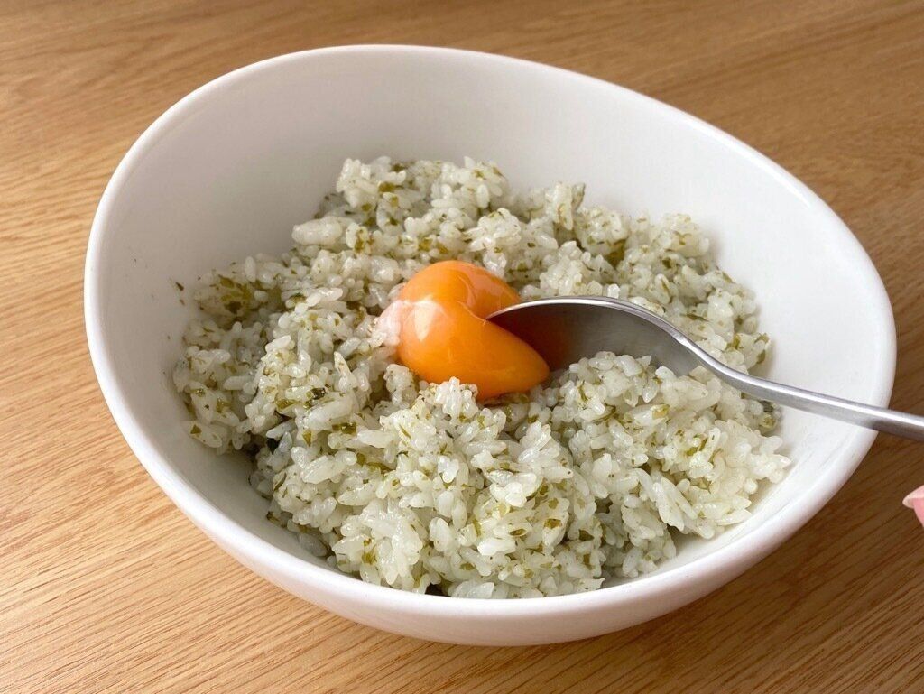温かいごはんに混ぜるだけで、のりとごま油の風味を楽しめる混ぜごはんがつくれます。卵黄やネギ、韓国のりをトッピングするとよりおいしく食べられます。