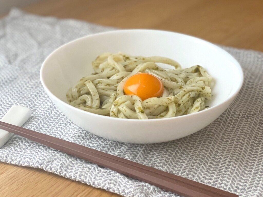 温かいうどんと混ぜて卵黄をトッピングするのもオススメ。トロミのあるたれはうどんとの絡みもよく、しっかりと味がのりますよ。食欲がない日にもサラッと食べられます。