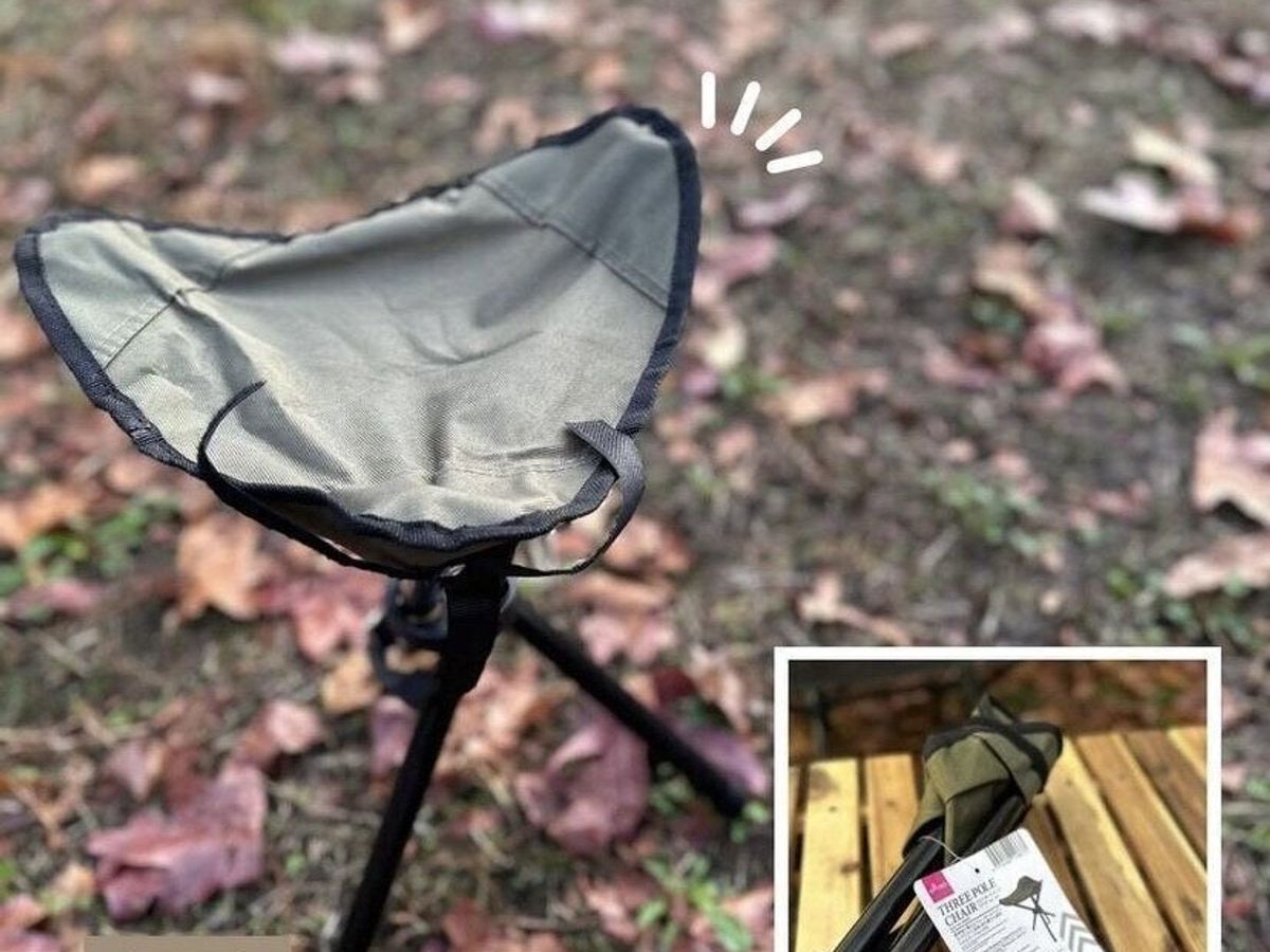コスパがよすぎて2個買いしたというかた続出中の、「スリーポールチェア」(330円)。折りたたみ式のミニチェアはコンパクトに収納ができ、ショルダーベルトがついているので持ち運びも楽チン!