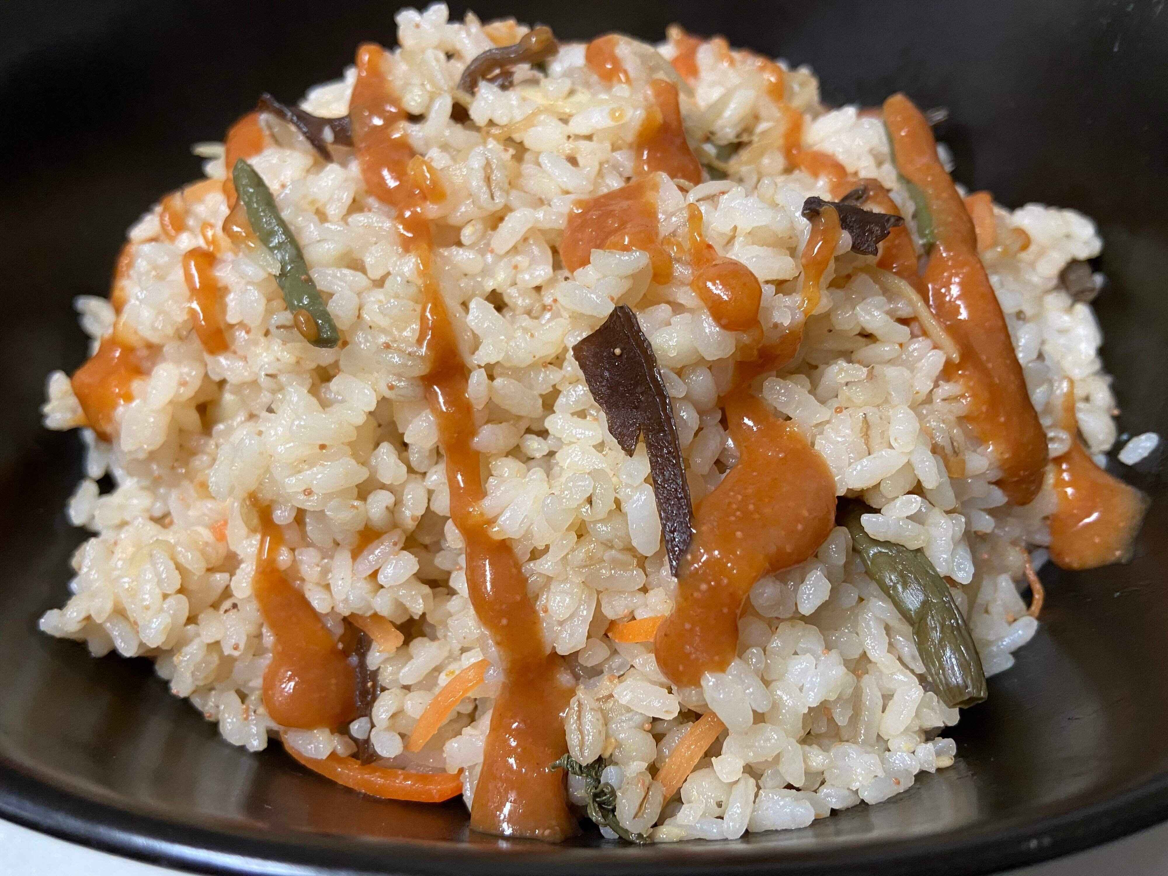 パッケージに掲載のご飯の量より少し多めでつくりましたが、たれの塩気が濃いめなのでちょうどよかったです。また、具材とからめだれを混ぜてからごま油を少量ひいたフライパンで焼くと、香ばしいおこげができて石焼ビビンバ風に楽しむこともできますよ。