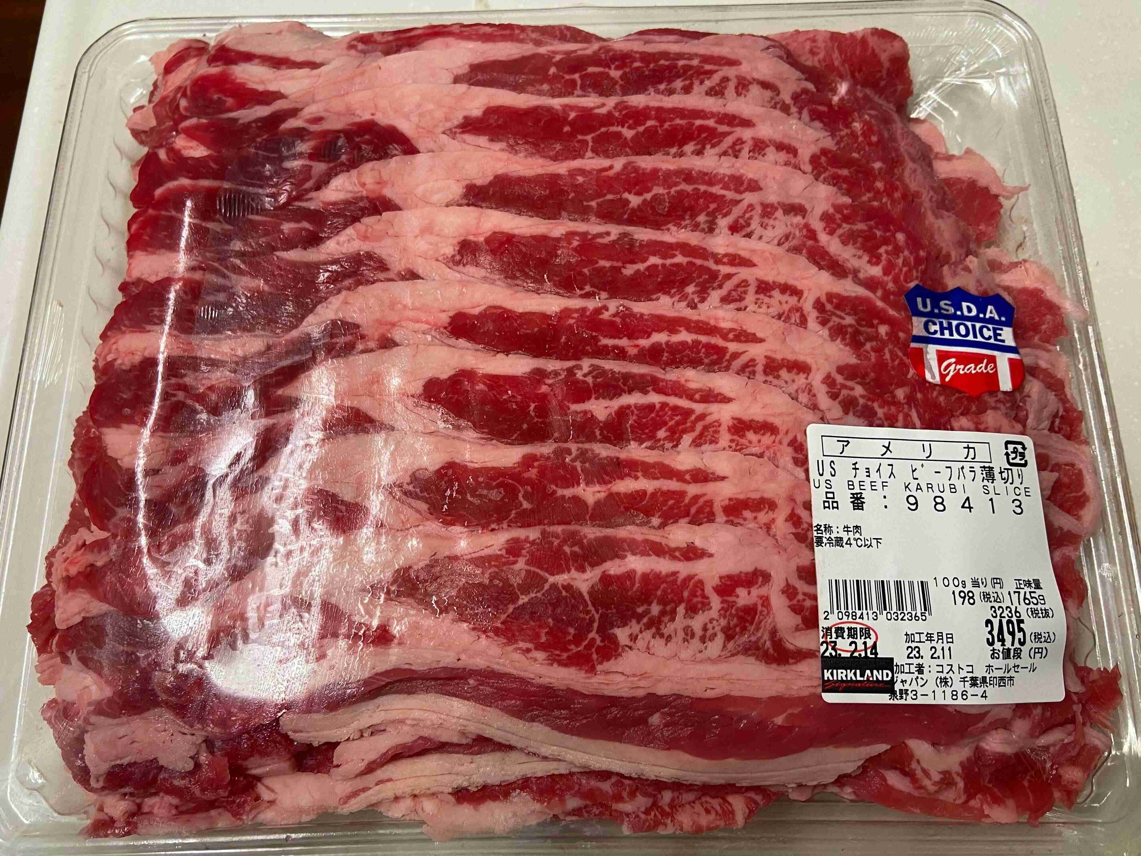 今回紹介するのは、「USチョイスビーフバラ薄切り」(購入時:3,495円)です。