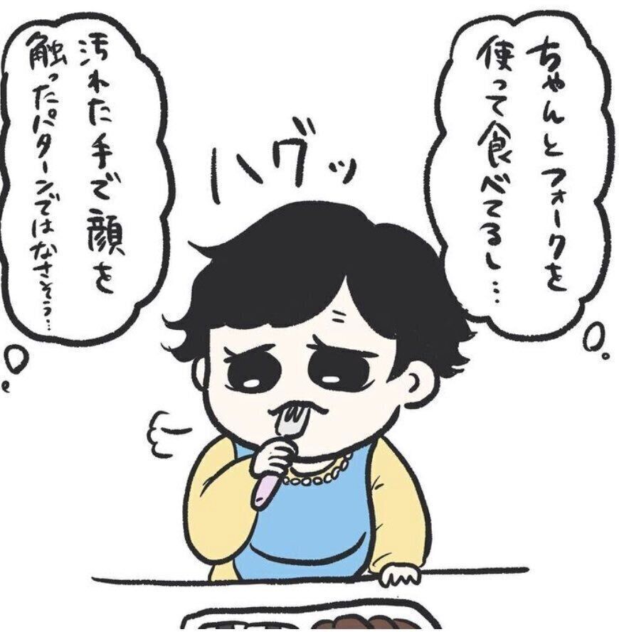 ジェーコさん(@jeeeeeeeeeeko)が「お食事中の謎」というタイトルでTwitterに育児漫画を投稿。食事をしていると必ず顔のどこかが汚れている息子さんでしたが、一体その汚れはどのようにしてつくのでしょうか。お話をうかがいました。