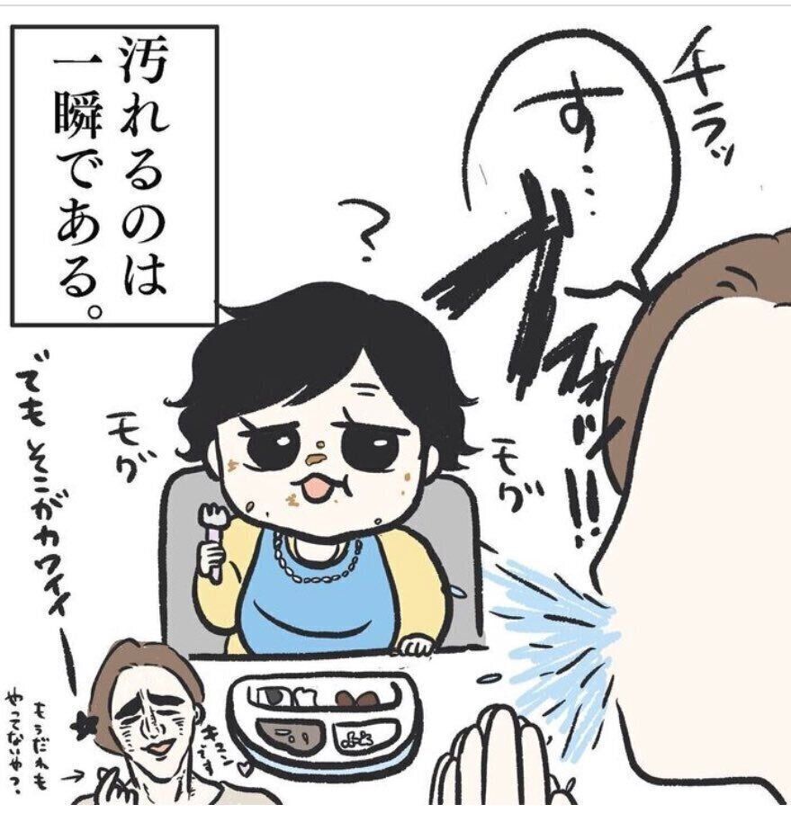 食事中に顔が汚れている姿は、子どもがしっかりごはんを食べている証拠でもあります。顔の汚れの経緯は気になりますが、むしろそのぐらいわんぱくにモリモリ食べてくれるのはうれしくもありますね!