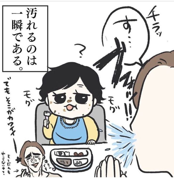 そこで汚れる瞬間を見届けようと、食事をする息子さんの様子をしばらく見守ることに。