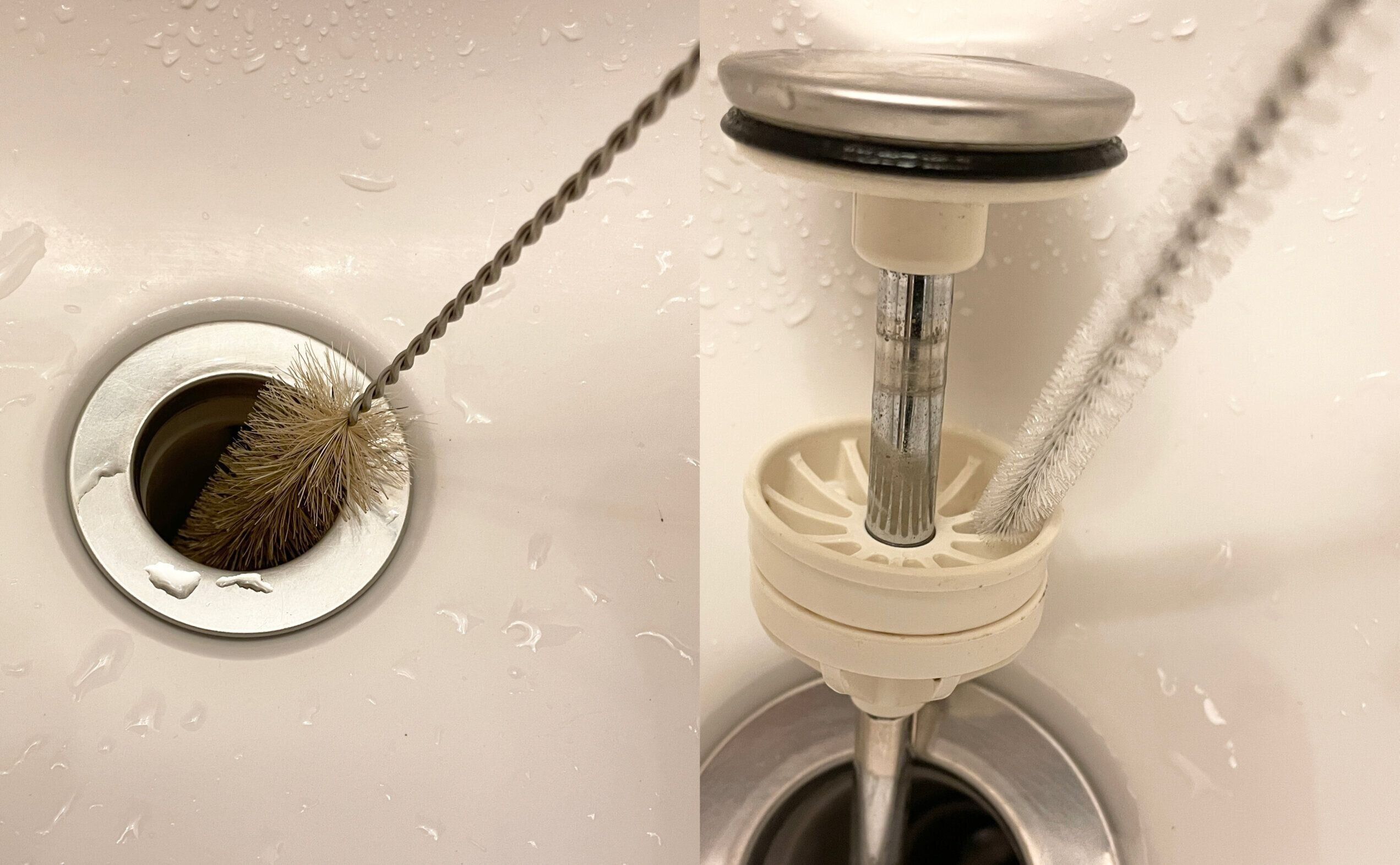 とくに洗面所の排水口にピッタリ。洗面所の排水口はキッチンよりも小さいことが多いため、注ぎ口洗いブラシが大活躍します。