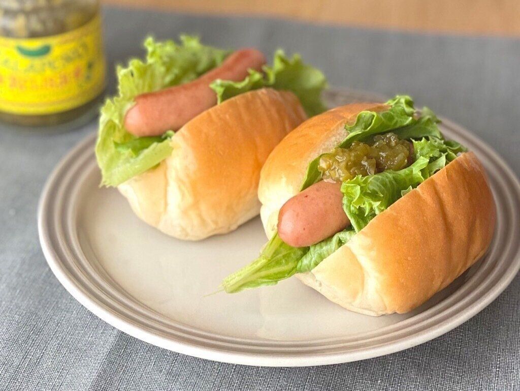定番ですがウインナーとの相性は抜群。ジューシーなウインナーの油をサッパリと仕上げてくれるので、ワンランク上の味わいのホットドックになりますよ。