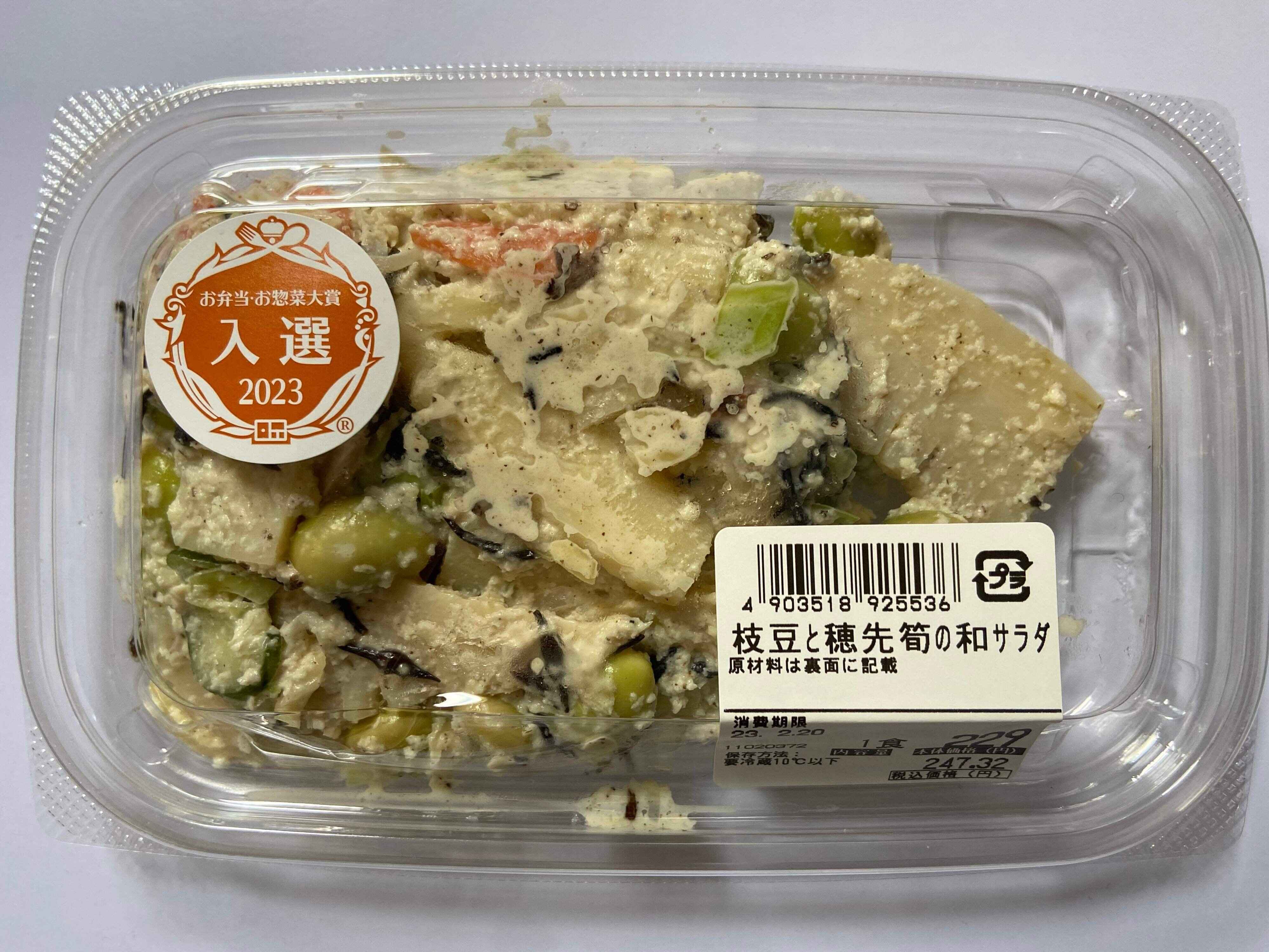 今回紹介するのは、ロピアのお惣菜コーナーに並んでいた「枝豆と穂先筍の和サラダ」(購入時:247円)です。