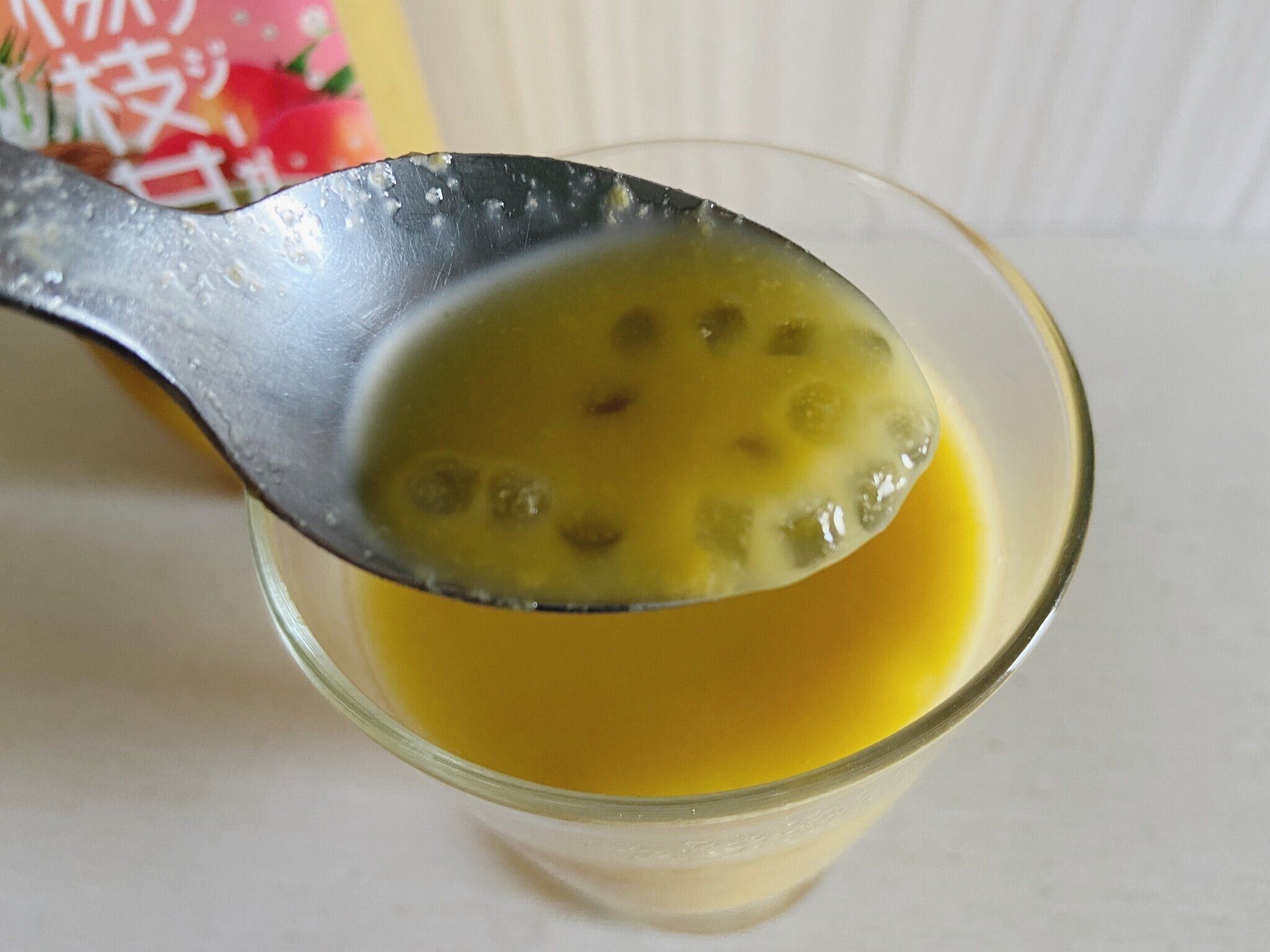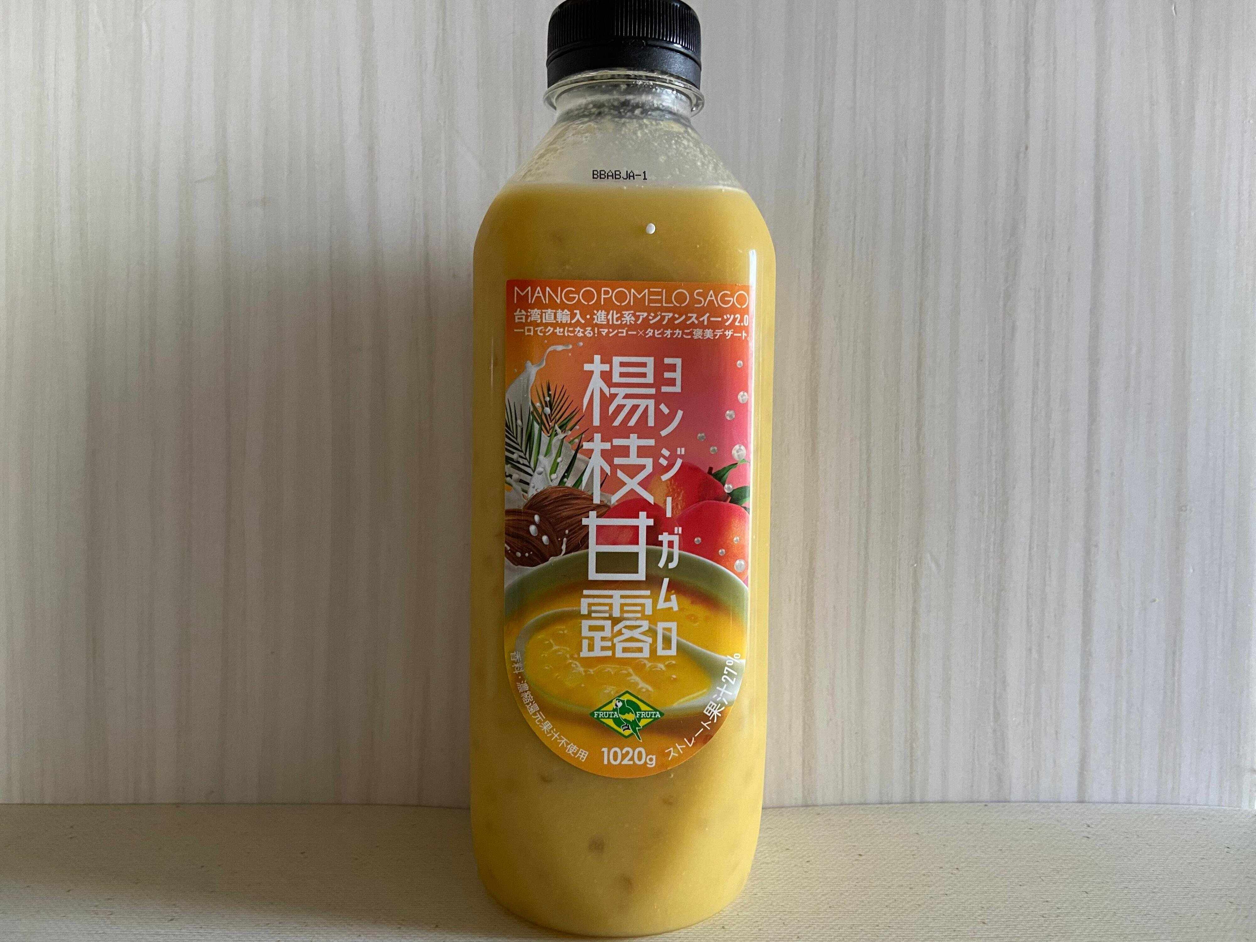 台湾で大人気の飲料だそうで、マンゴー、パッションフルーツ、ココナッツミルク、グレープフルーツにタピオカボールが入っています。
