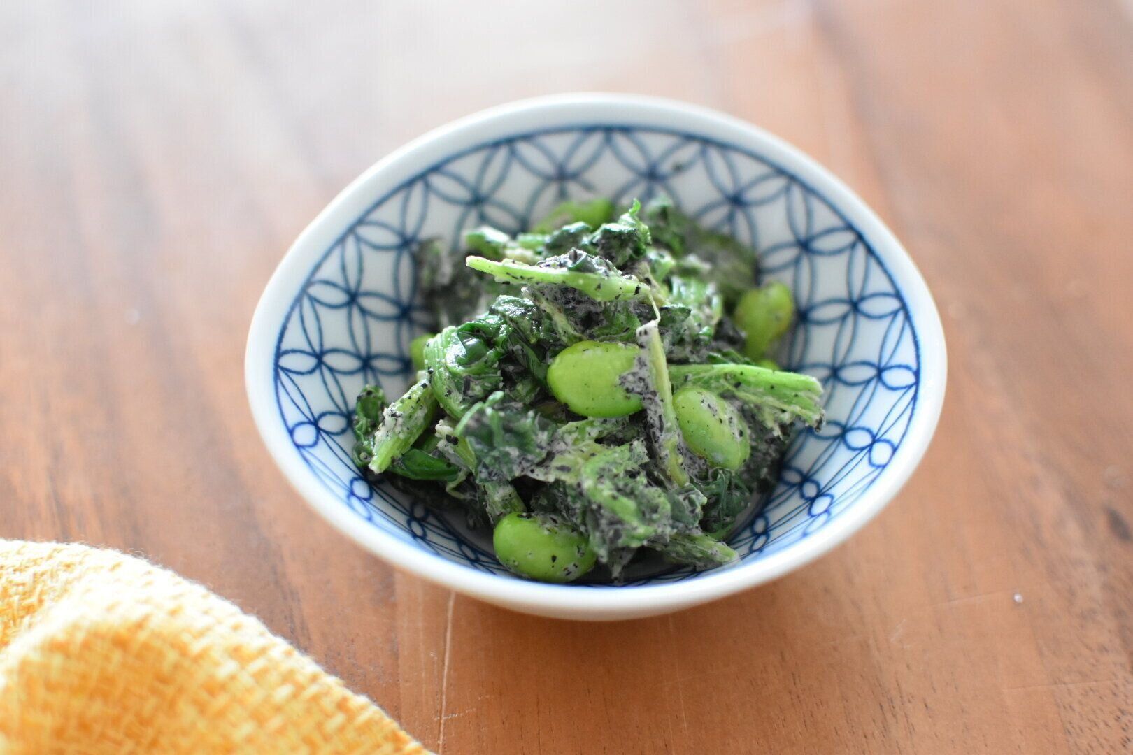 2.むき枝豆を加え、Aを加えて全体に混ざるように和える