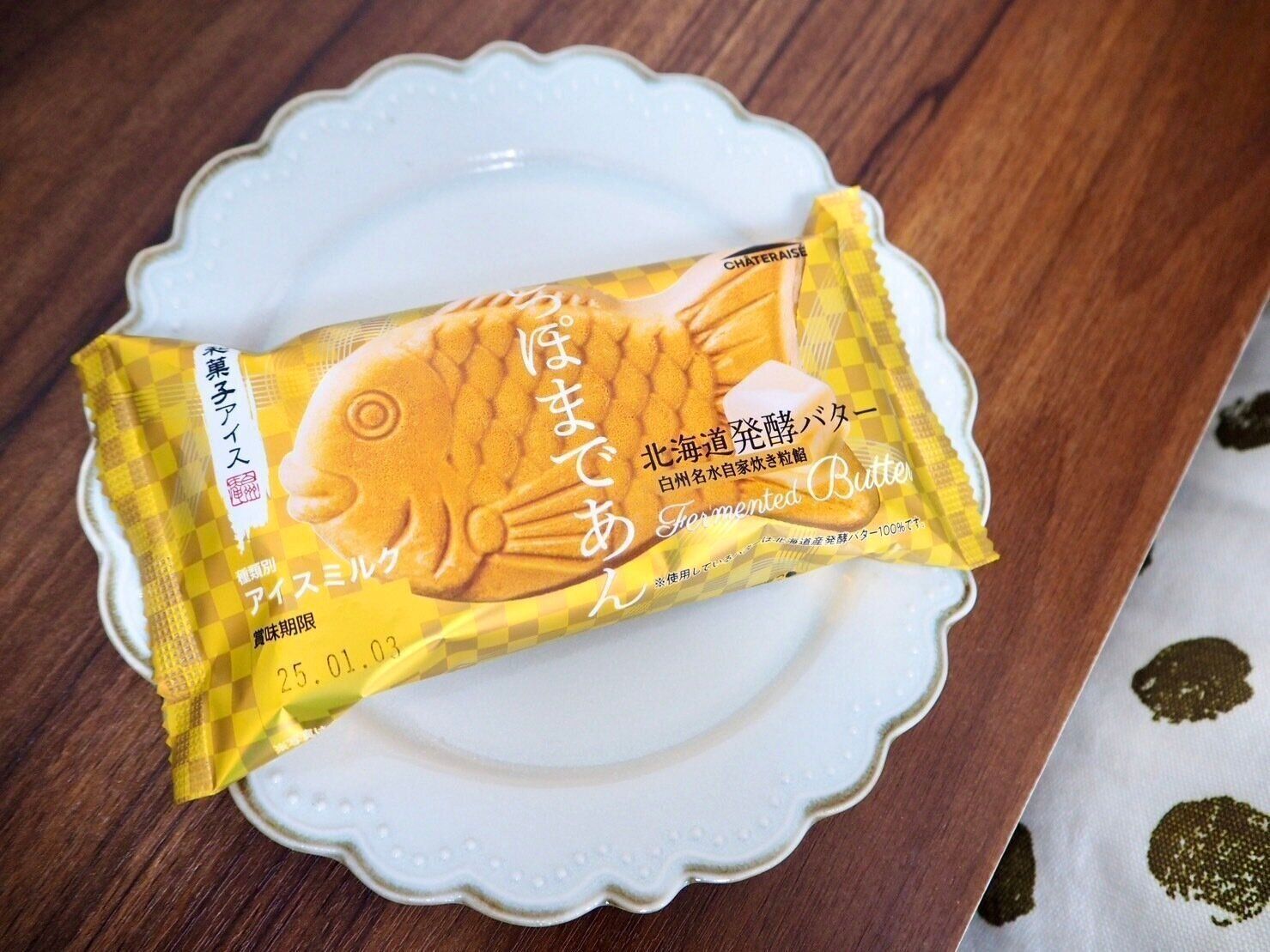北海道発酵バターを使用したアイスと、白州名水で炊いた北海道産小豆の自家炊き粒餡をたい焼き型のモナカで包んだ見た目もかわいらしい商品です。