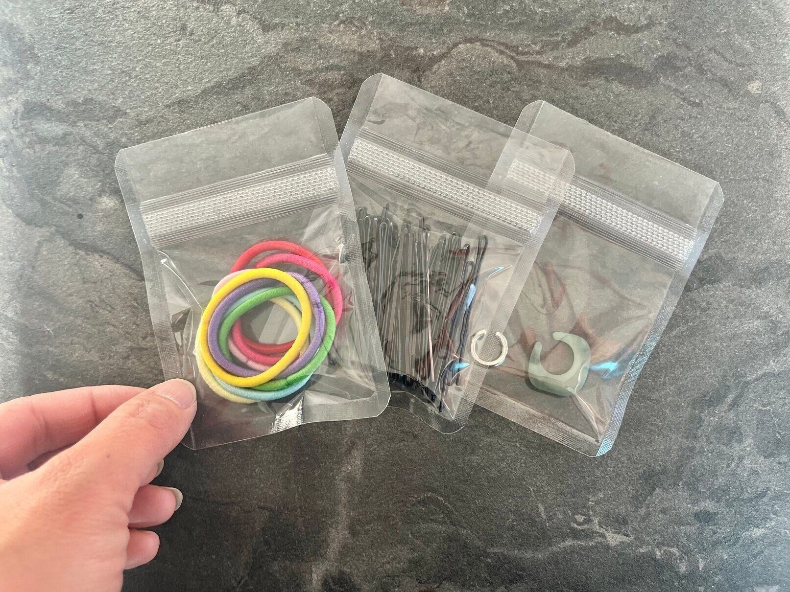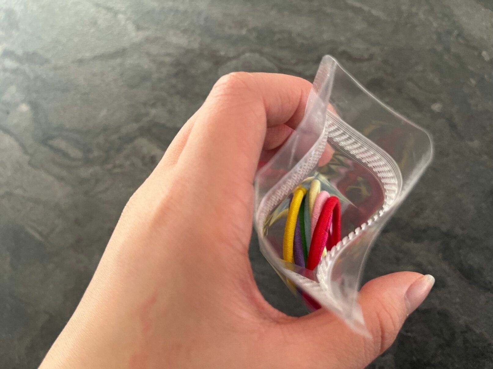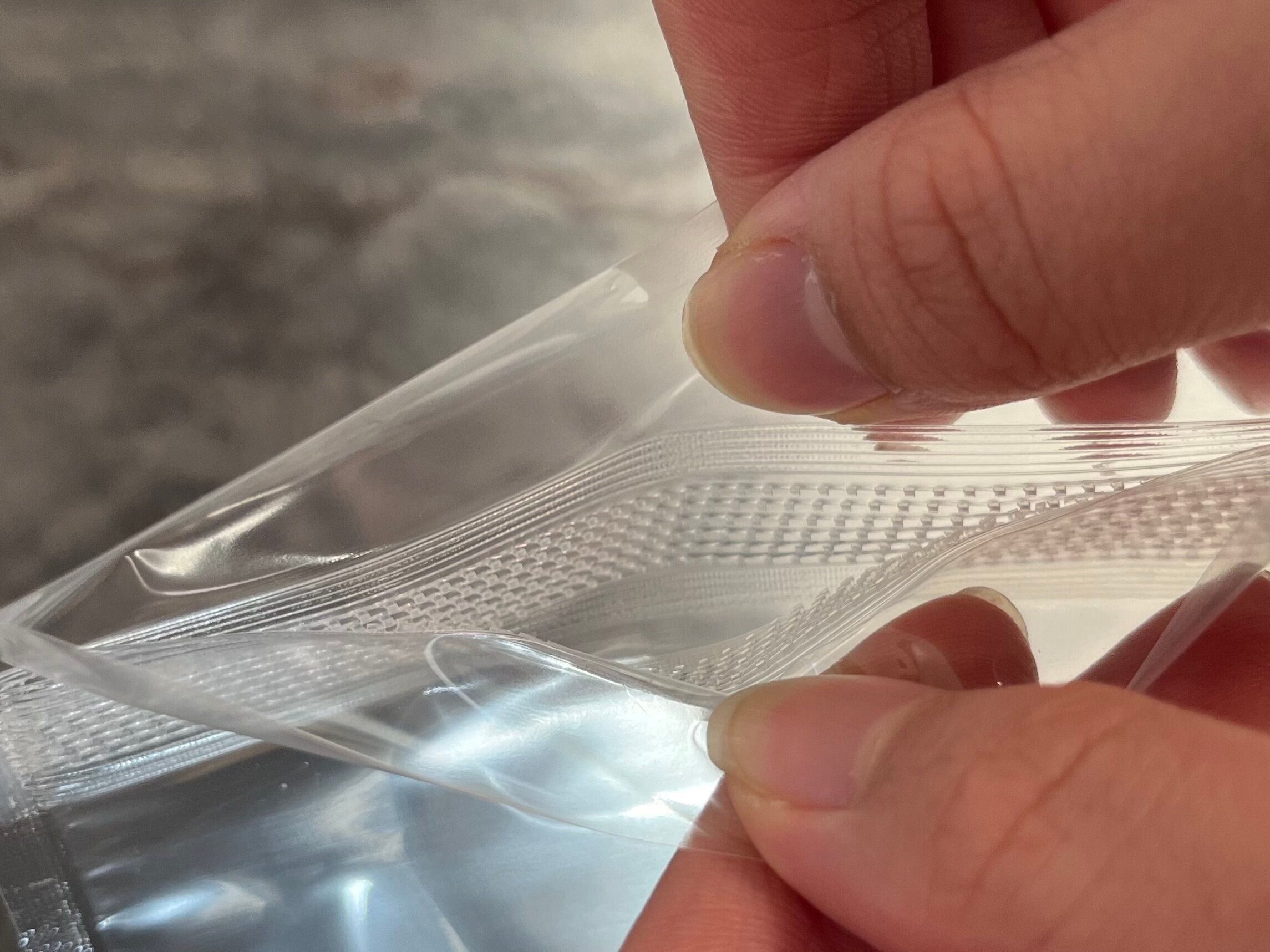 この商品パッと見はふつうのジッパー袋のようですが、じつは口のところのつくりがマジックテープのようになっているので開け閉めしやすいという特徴があるんです。