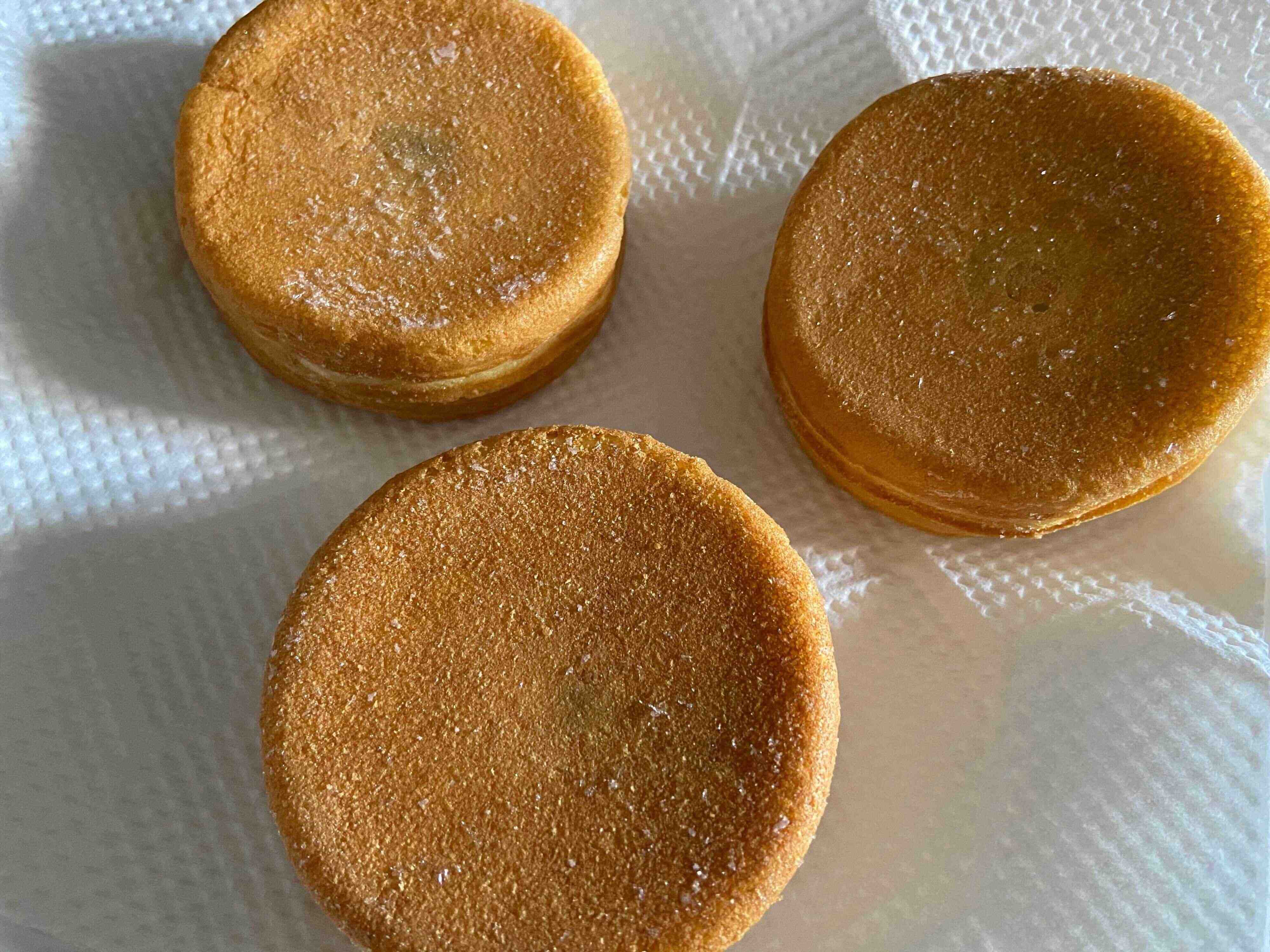 3個の今川焼、ラップをせずに電子レンジ500Wで約3分加熱しました。