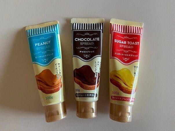 朝はパン派のかたたちにもぴったりの使いやすいチューブタイプで、塗りやすいスプレッド。購入時価格は、各196円でお手ごろです。