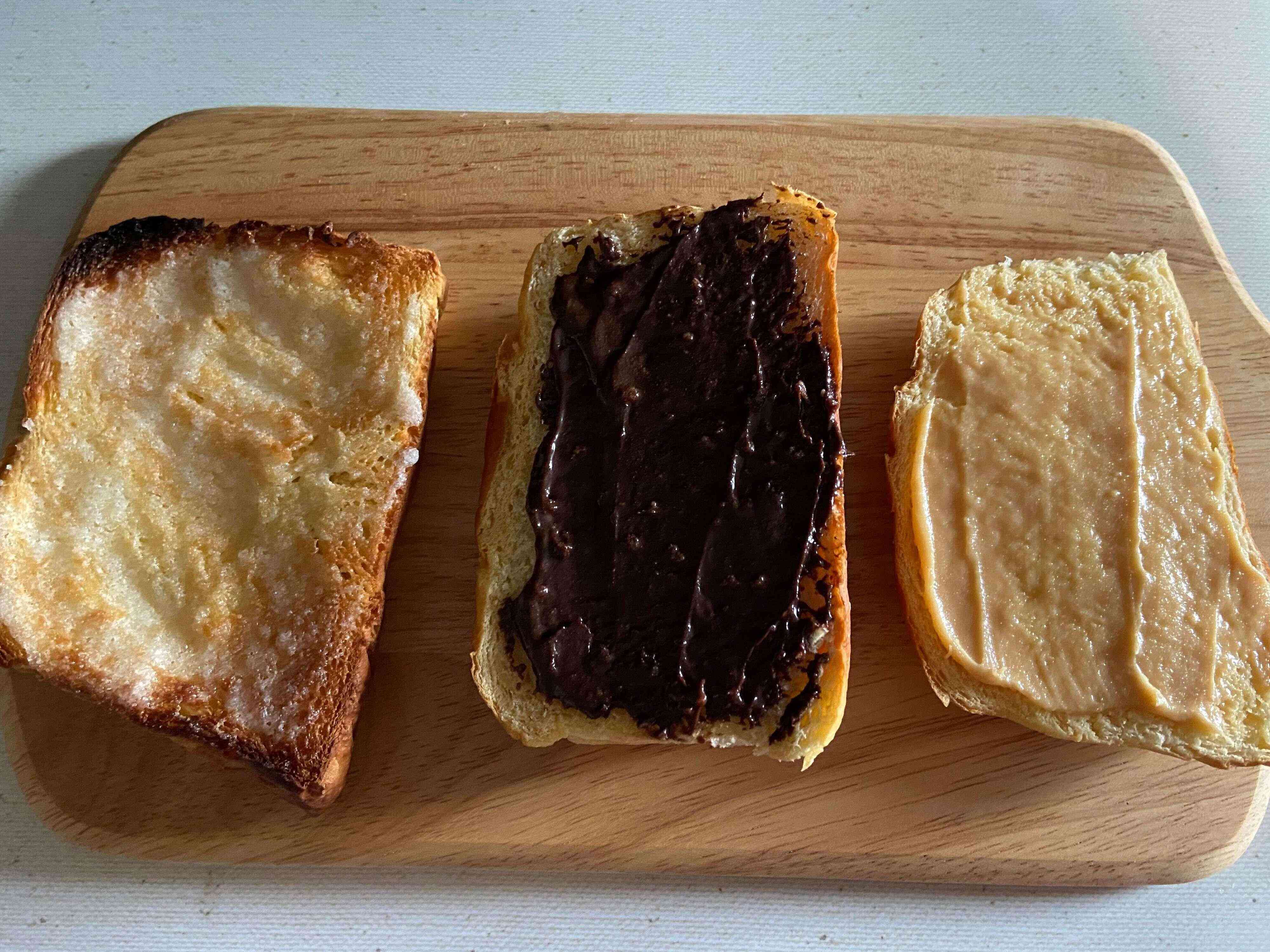 一番左のシュガートーストスプレッドは、食パンに塗ってから焼くタイプ。ラスクのようなシャリシャリの香ばしい食感に焼き上がり、昔懐かしい甘くてサクサクの味わいがたまりません。