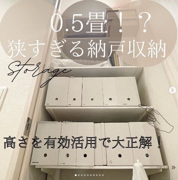 収納棚は、いろいろなサイズのある無印良品のファイルボックスを活用するときれいに収納することができます。収納するものを種類ごとに分け、ラベリングをしておくととても分かりやすいですね。