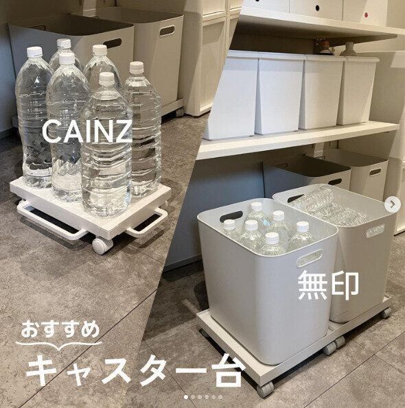 ペットボトルのストックにはキャスターをつけるのが便利!